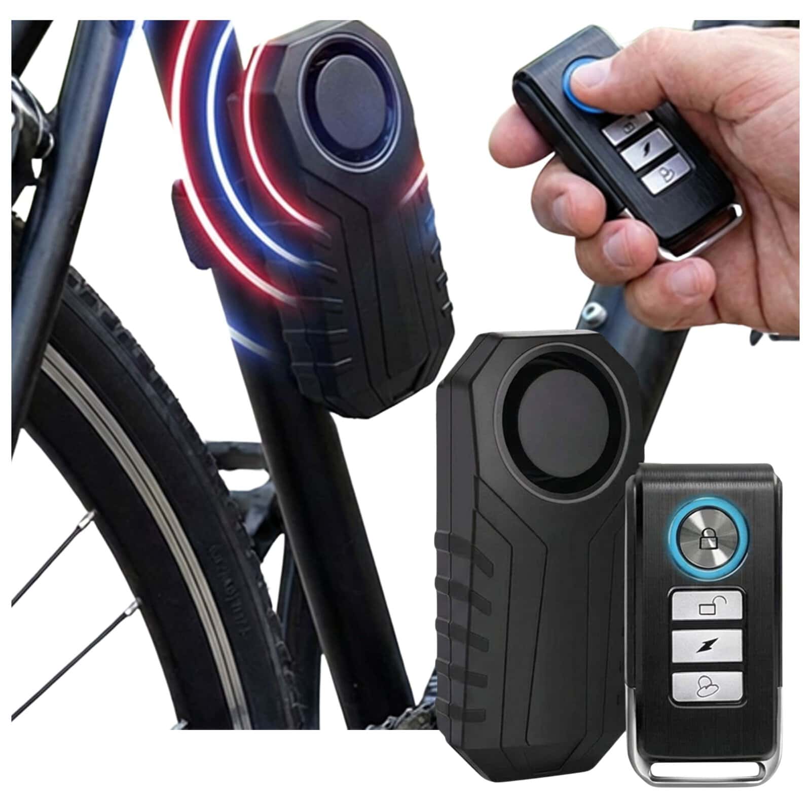 - Wygodne sterowanie pilotem – Pełna kontrola nad alarmem bez schylania się czy manipulowania przy urządzeniu — uzbrajasz i rozbrajasz system jednym kliknięciem.