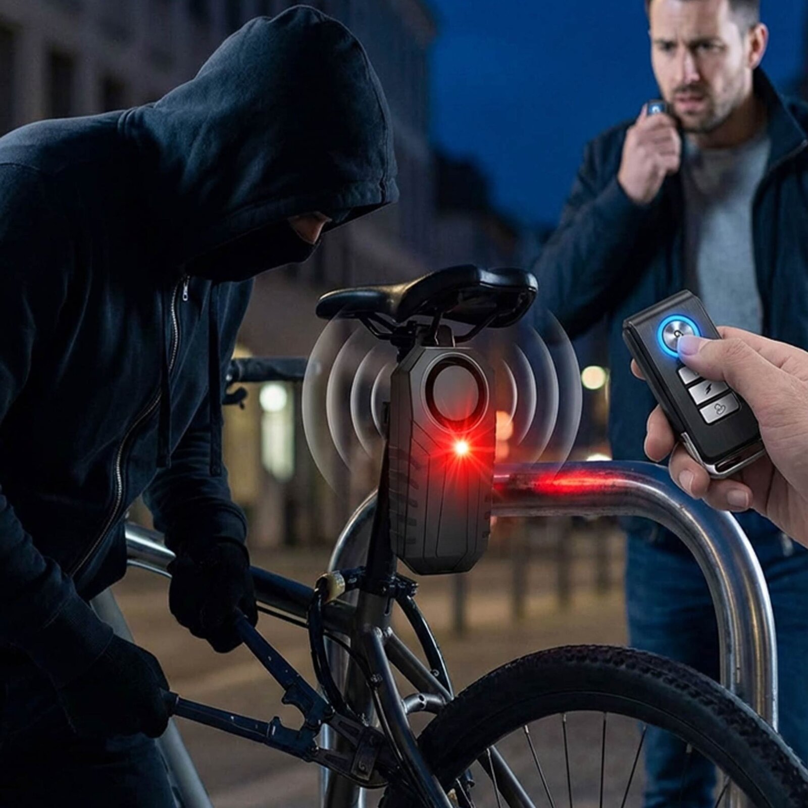 - Regulowana czułość działania – Możliwość dopasowania reakcji alarmu do miejsca postoju — garaż, klatka schodowa, parking miejski lub ulica.