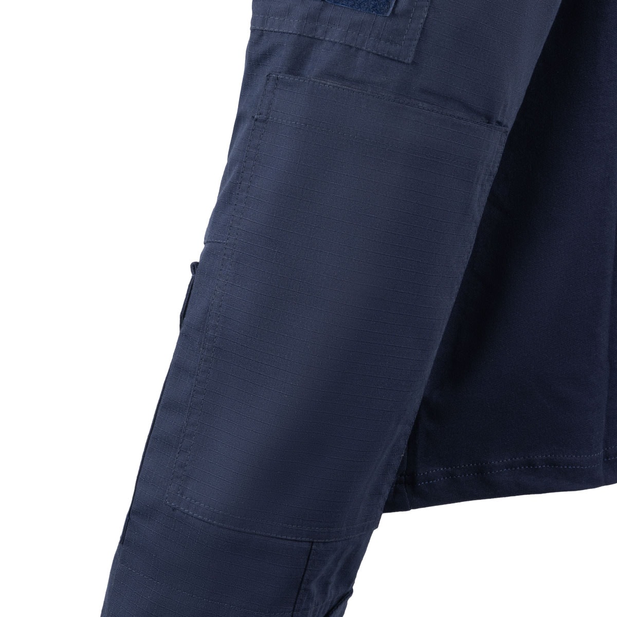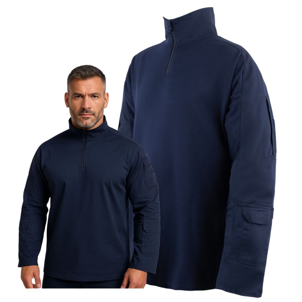 Combat Shirt Policji w kolorze granatowym to profesjonalna bluza bojowa przeznaczona do użytku służbowego przez funkcjonariuszy formacji mundurowych, w szczególności Policji. Model zaprojektowany z myślą o działaniach operacyjnych, patrolowych i zabezpieczających, szczególnie w połączeniu z kamizelką taktyczną.