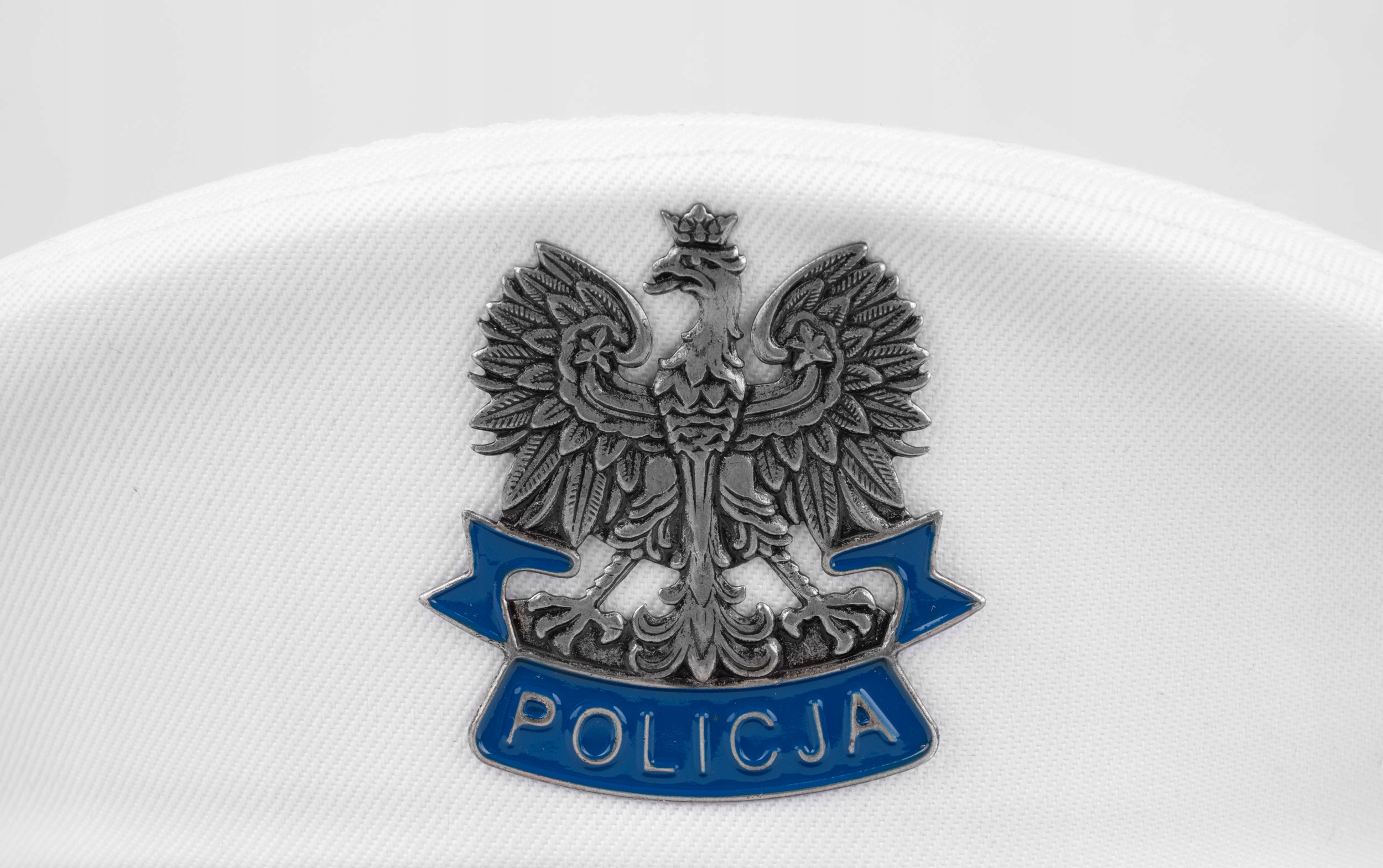Oficjalna czapka policyjna dla korpusu: szeregowych, podoficerów, aspirantów, wykonana według norm KGP – Wydział Ruchu Drogowego