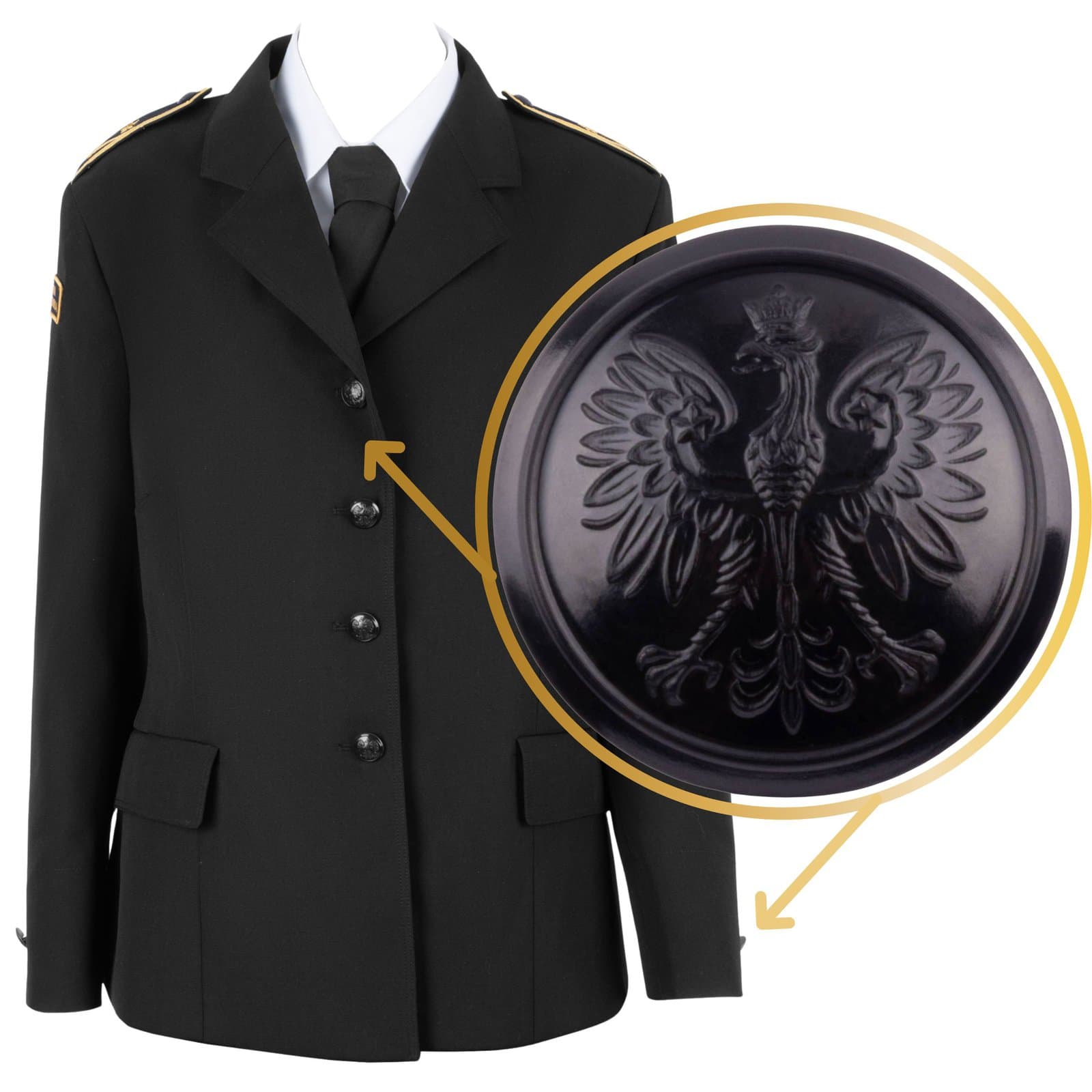 Guzik bakelitowy Straży Pożarnej 22 mm to dedykowany element umundurowania przeznaczony do marynarek strażackich. Zaprojektowany z myślą o zachowaniu reprezentacyjnego wyglądu munduru oraz spójności z obowiązującymi normami umundurowania służb mundurowych.