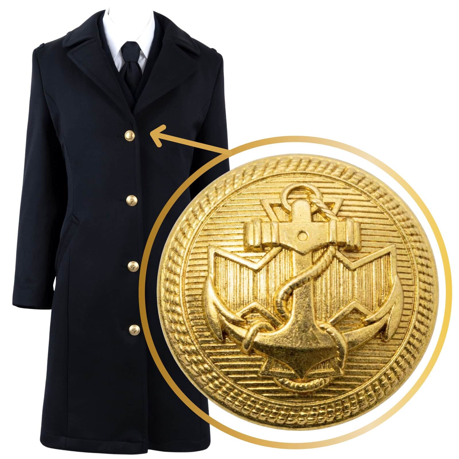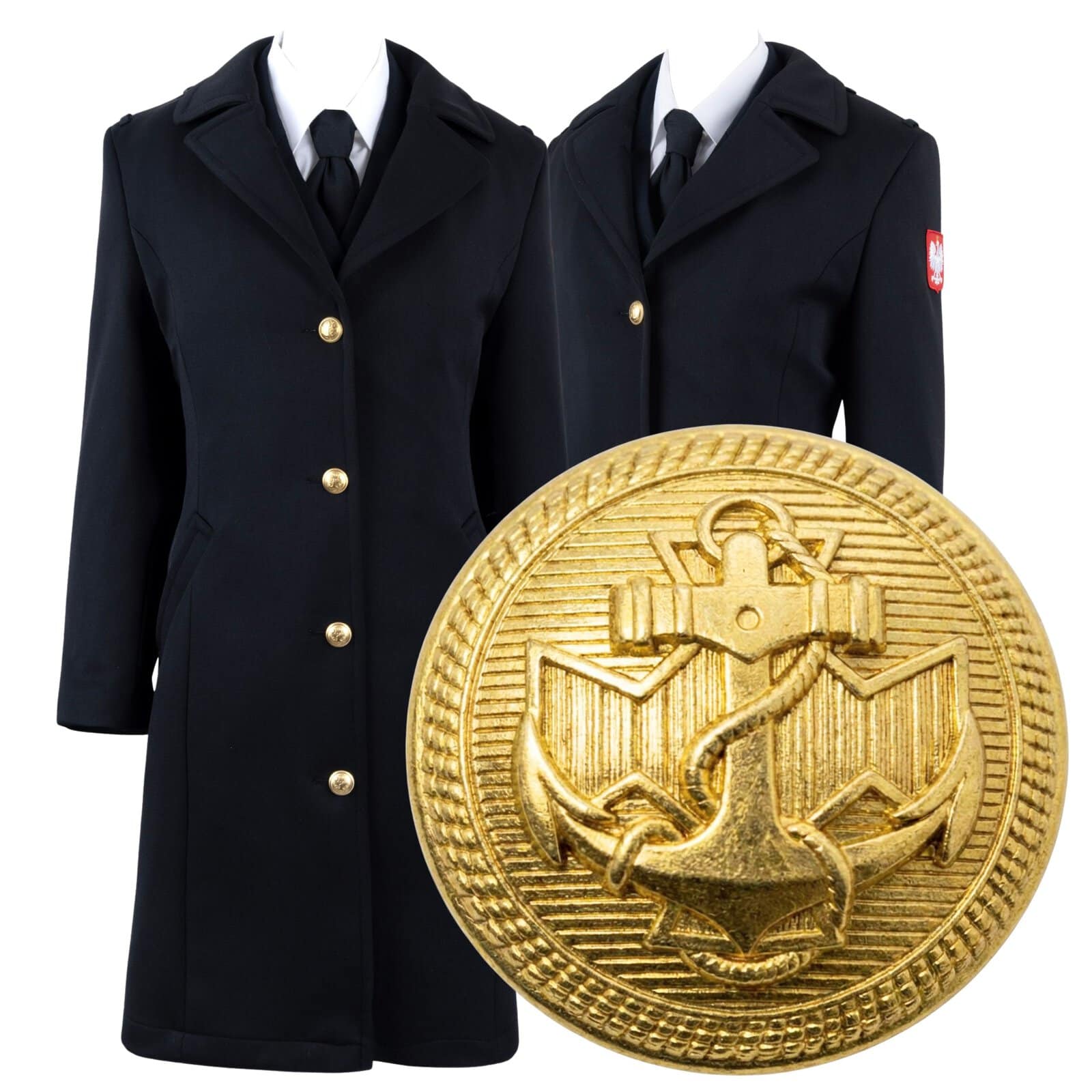 Elegancki guzik Marynarki Wojennej o średnicy 25 mm przeznaczony do płaszcza Marynarki Wojennej. To charakterystyczny element umundurowania, który podkreśla reprezentacyjny charakter stroju oraz nawiązuje do wieloletniej tradycji marynarskiej.