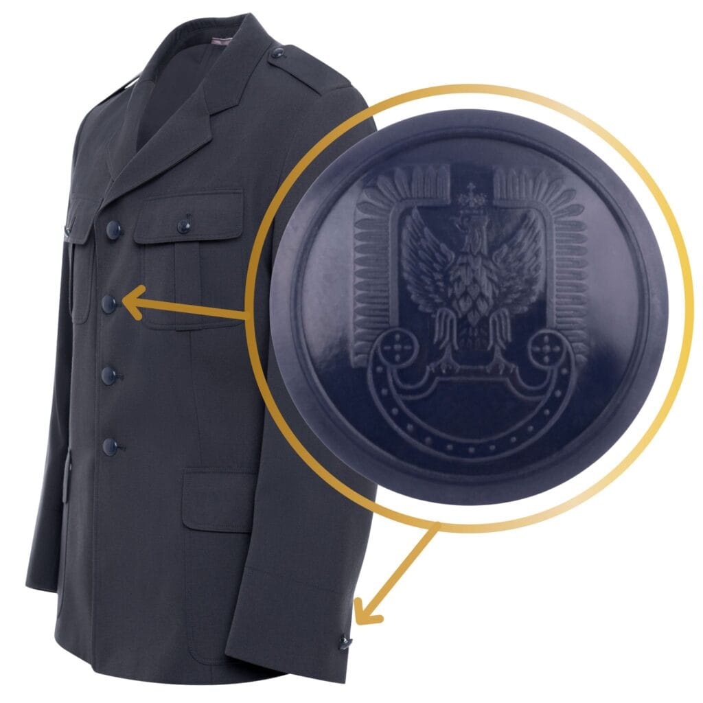 - Dedykowany do munduru wyjściowego – odpowiedni rozmiar i forma do głównych guzików marynarki oraz mankietów