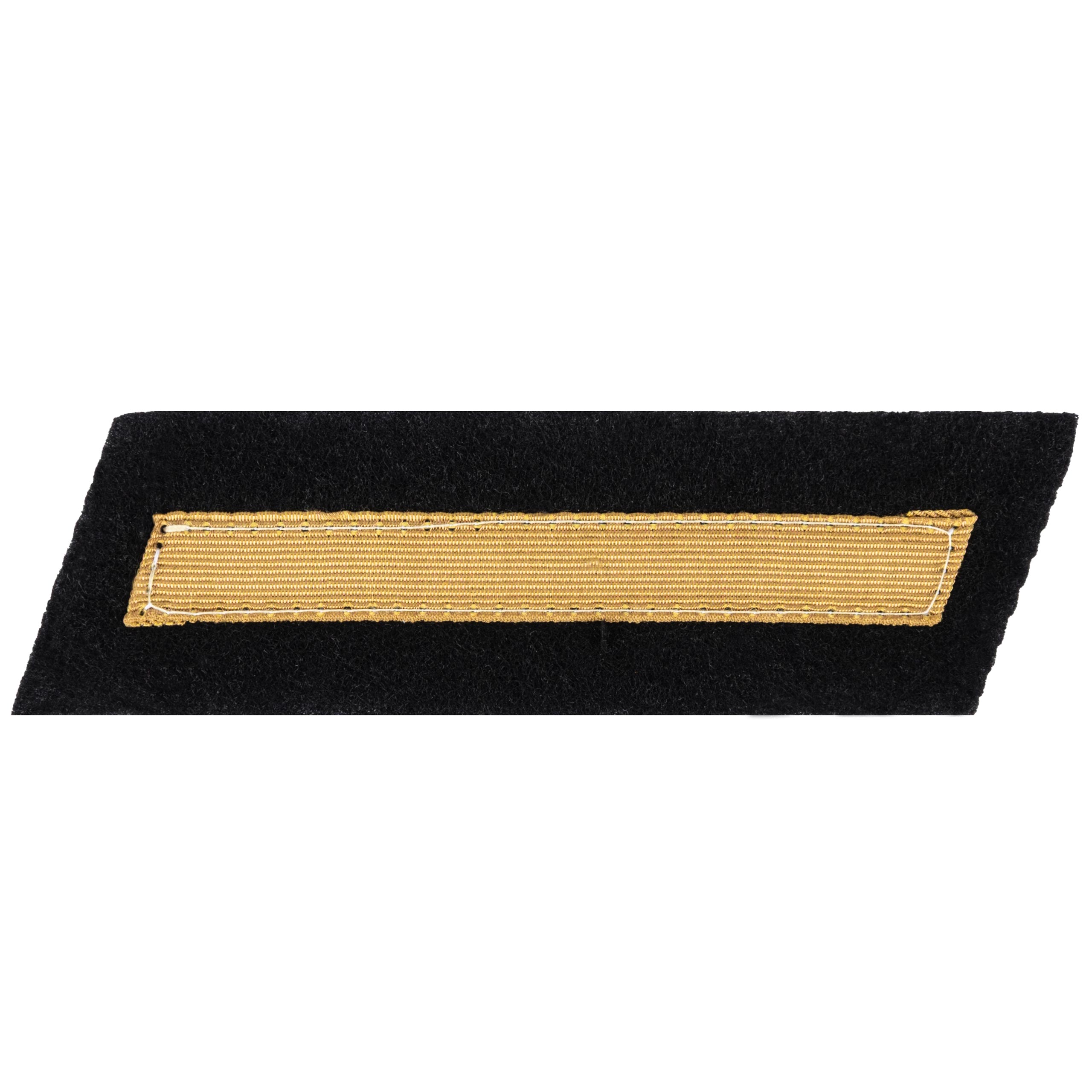 Dystynkcja rękawowa do munduru wyjściowego Marynarki Wojennej RP w stopniu Starszy Marynarz. Wykonana na czarnym sukiennym podkładzie ze złotą nicią, przeznaczona do naszycia na ramię. Cena dotyczy 1 sztuki.