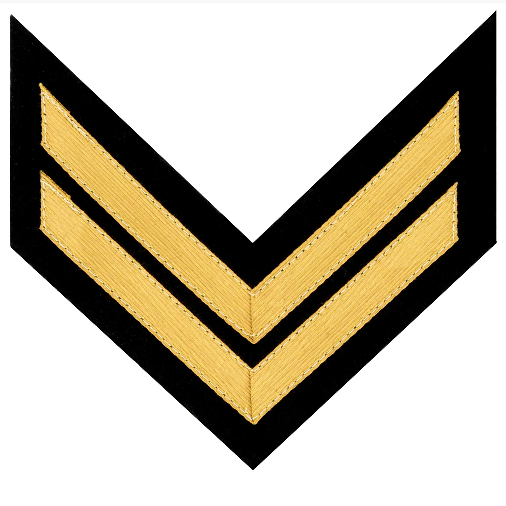 Dystynkcje rękawowe do munduru wyjściowego Marynarki Wojennej RP w stopniu Starszy Bosman. Wykonane na czarnym sukiennym podkładzie ze złotą nicią, przeznaczone do naszycia na oba rękawy. Komplet 2 sztuki.