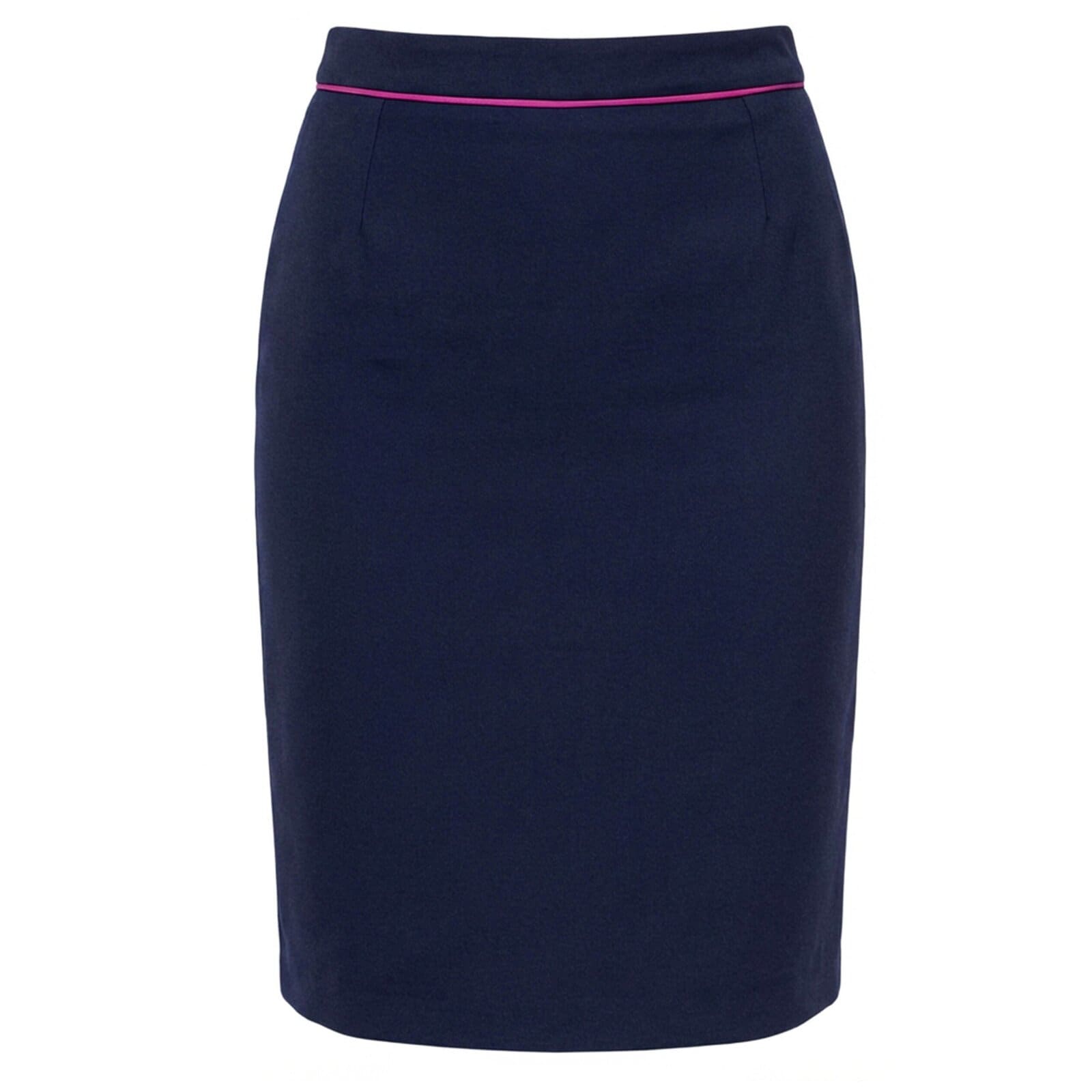 Granatowa Spódnica Ołówkowa Midi z Różowym Paskiem