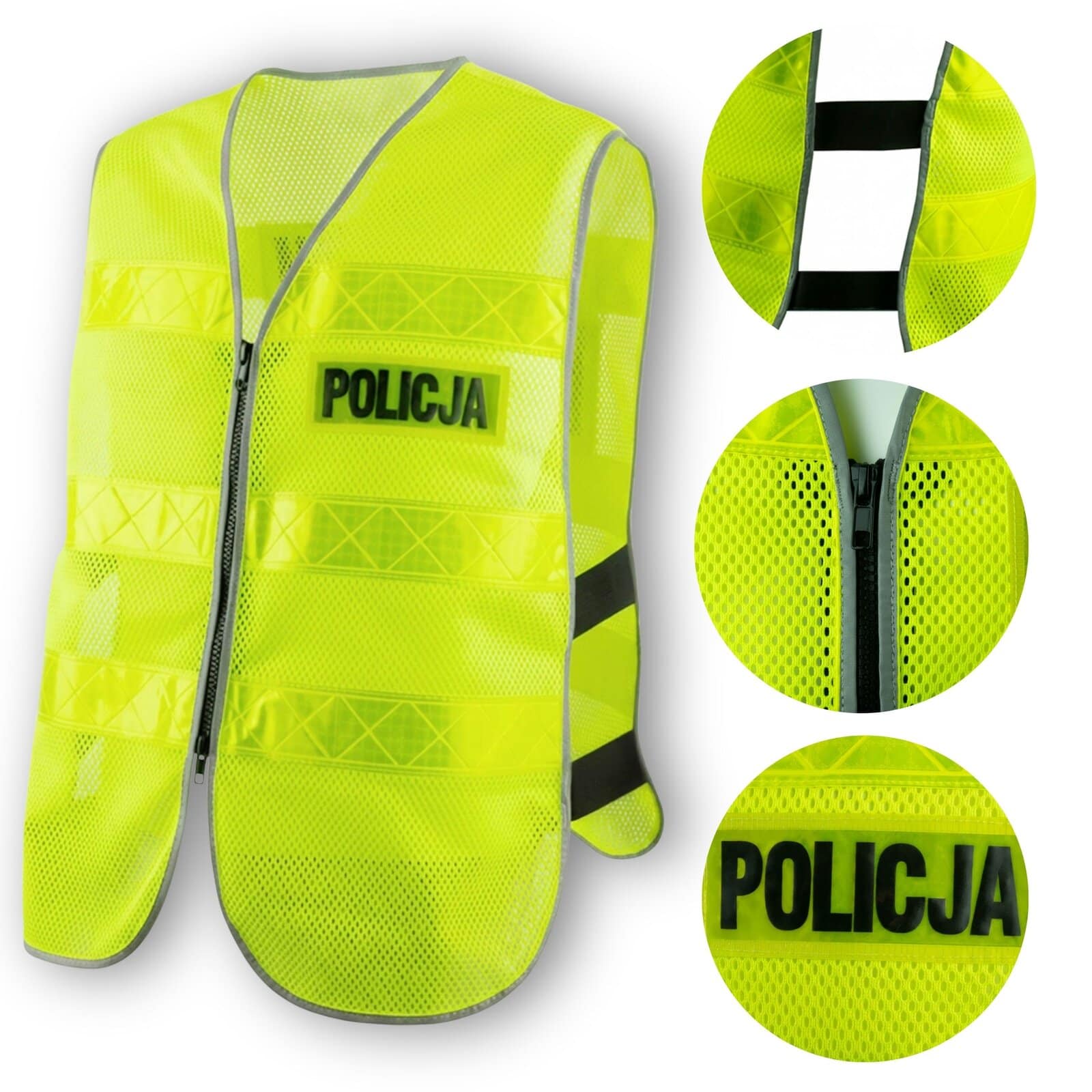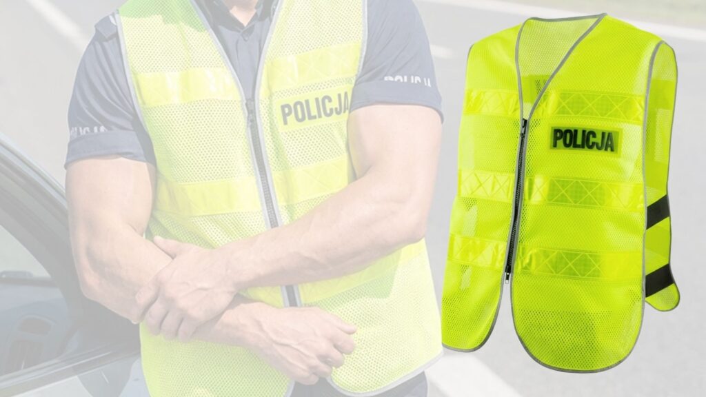 Kamizelka Ostrzegawcza Motocyklowa z Nadrukiem Policja Zapinana na Zamek
