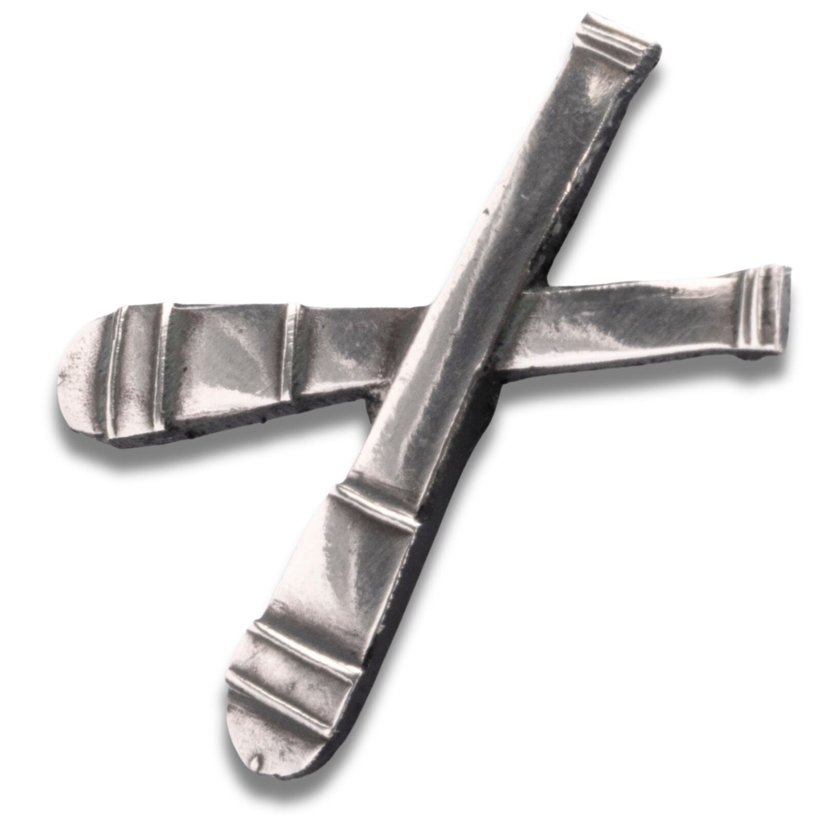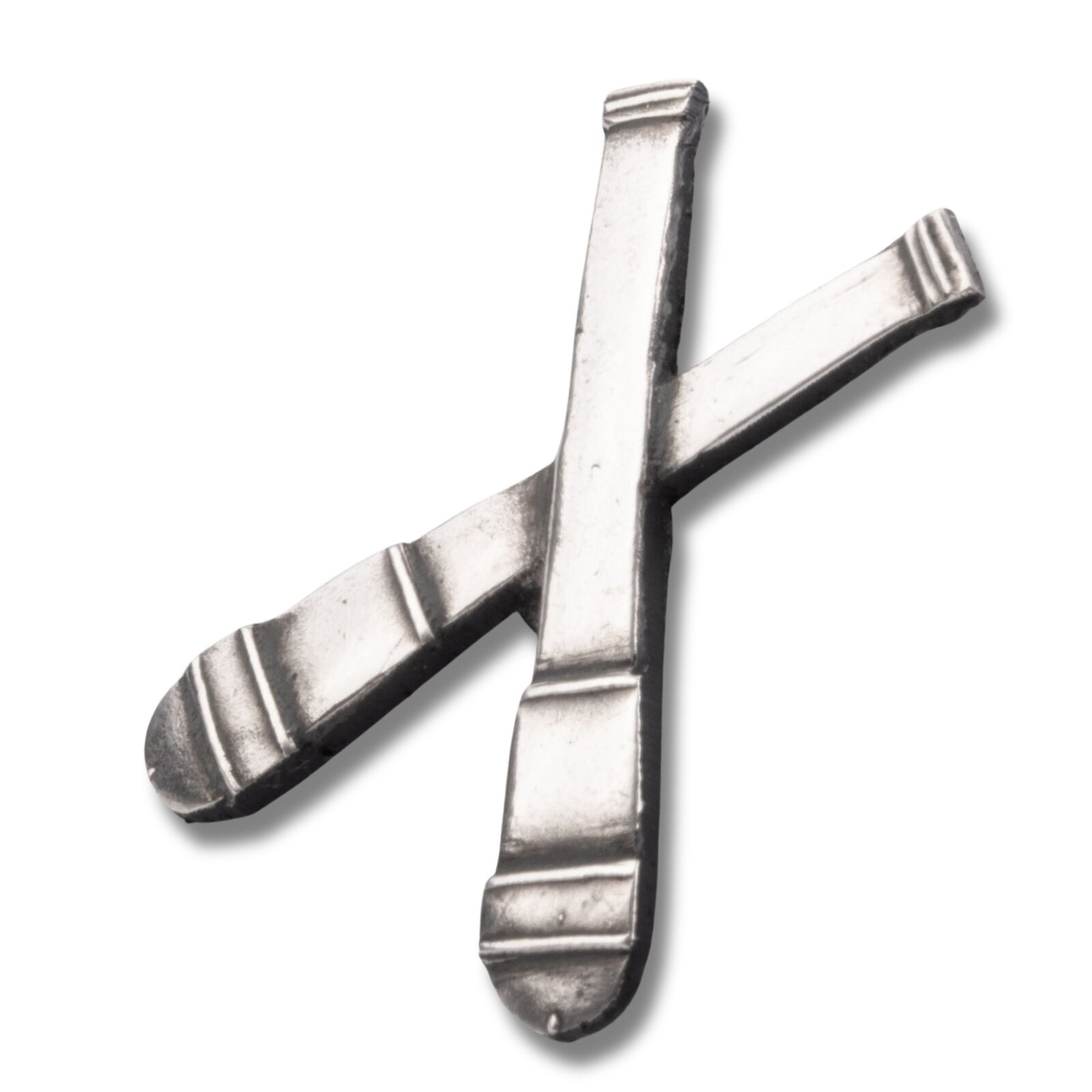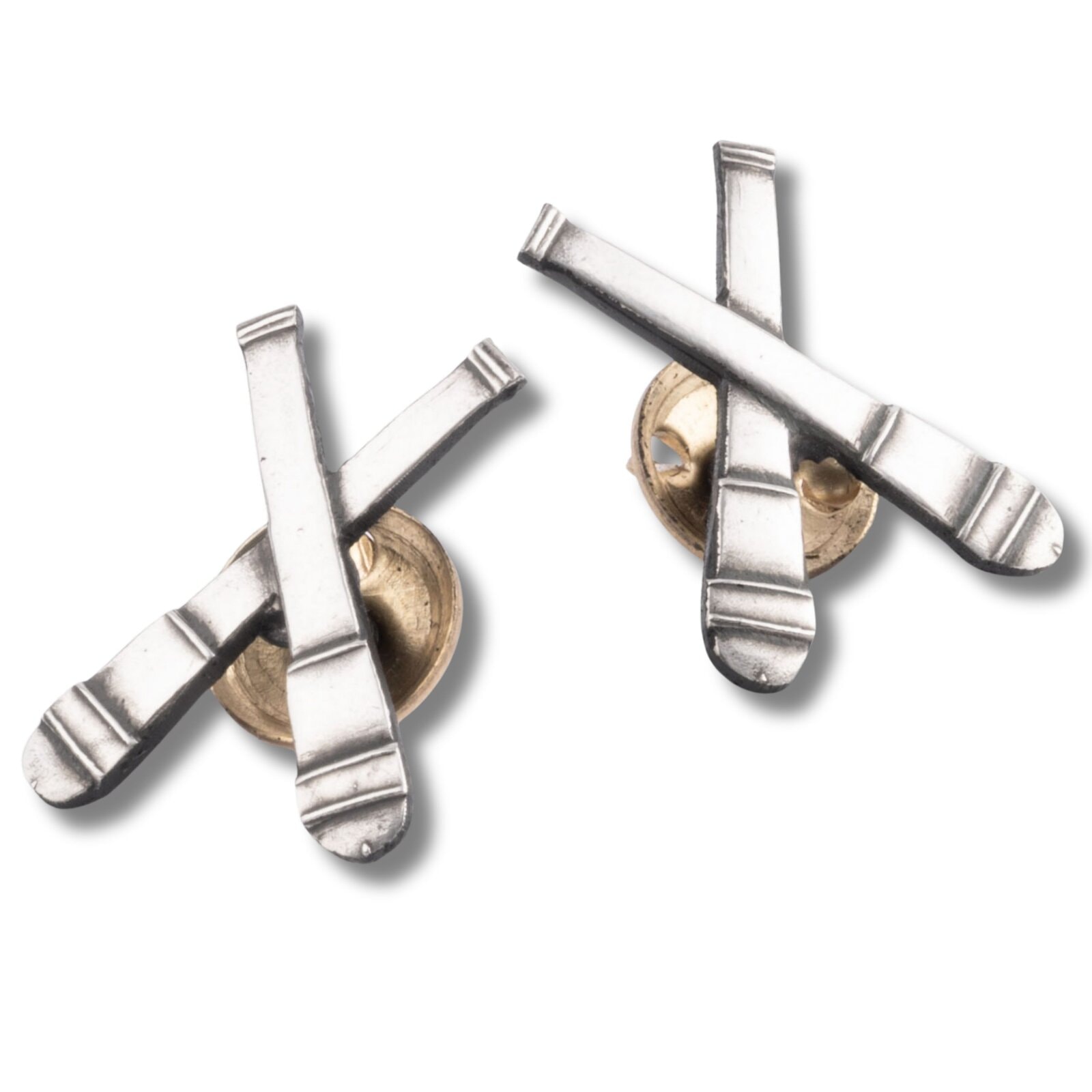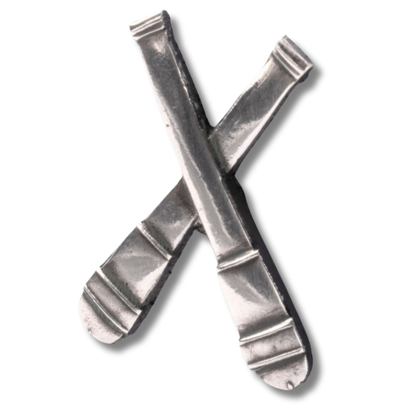 Profesjonalne korpusówki Wojsk Rakietowych i Artylerii Wojska Polskiego, wykonane z najwyższą starannością. Metal oksydowany w srebrnym kolorze, trwały i odporny na korozję. Każda przypinka wyposażona jest w solidne mocowanie na pins z blokadą, co zapewnia pewne przyleganie do kołnierza munduru służbowego.