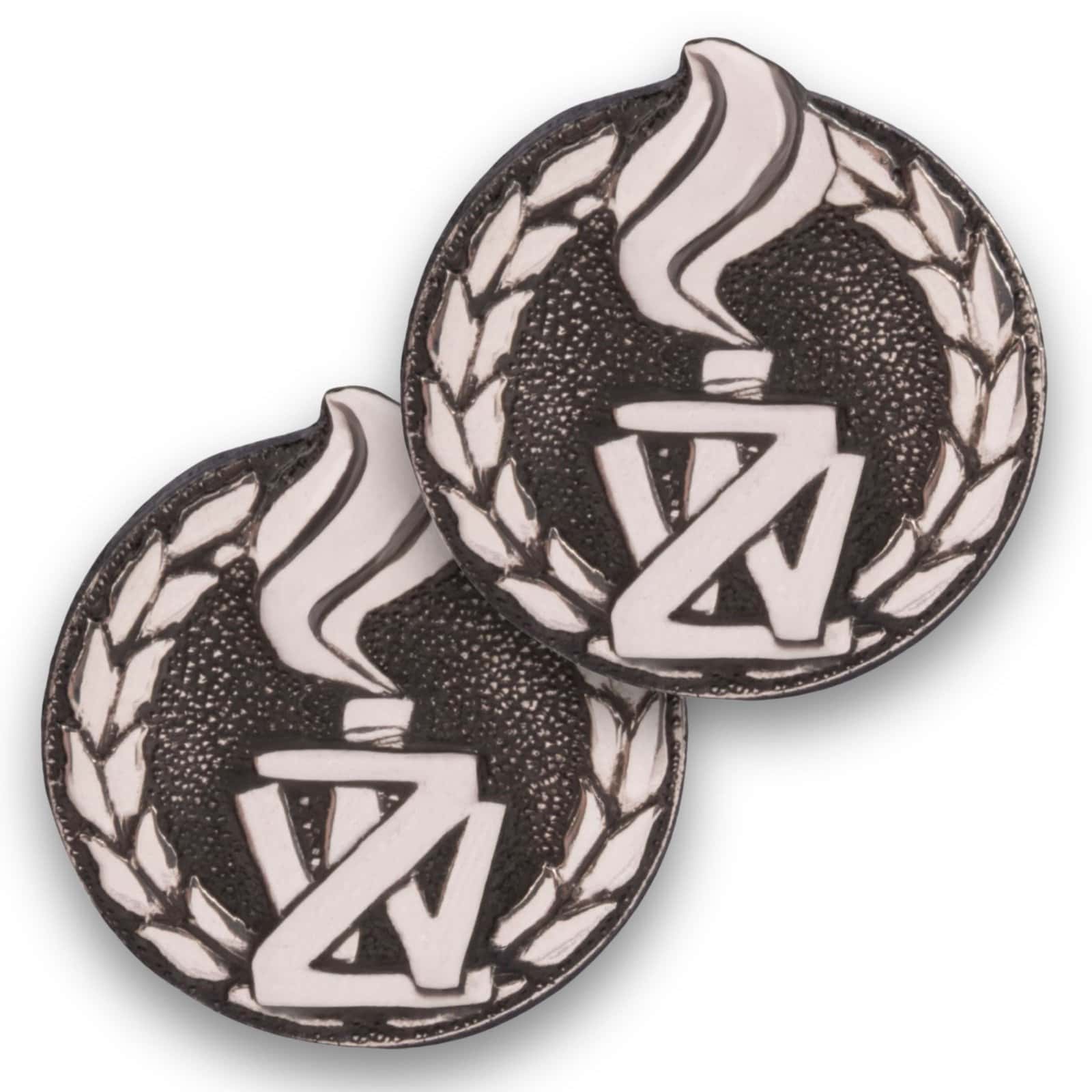 Korpusówki Żandarmerii Wojskowej to oficjalne metalowe odznaki noszone na kołnierzu munduru służbowego. Wykonane z trwałego, oksydowanego metalu w eleganckim srebrnym kolorze, przedstawiają charakterystyczny symbol ŻW – stylizowaną pochodnię oraz litery „ŻW” otoczone wieńcem laurowym. Znak ten podkreśla prestiż służby, odpowiedzialność oraz rolę Żandarmerii Wojskowej w utrzymaniu porządku i dyscypliny w Siłach Zbrojnych RP.