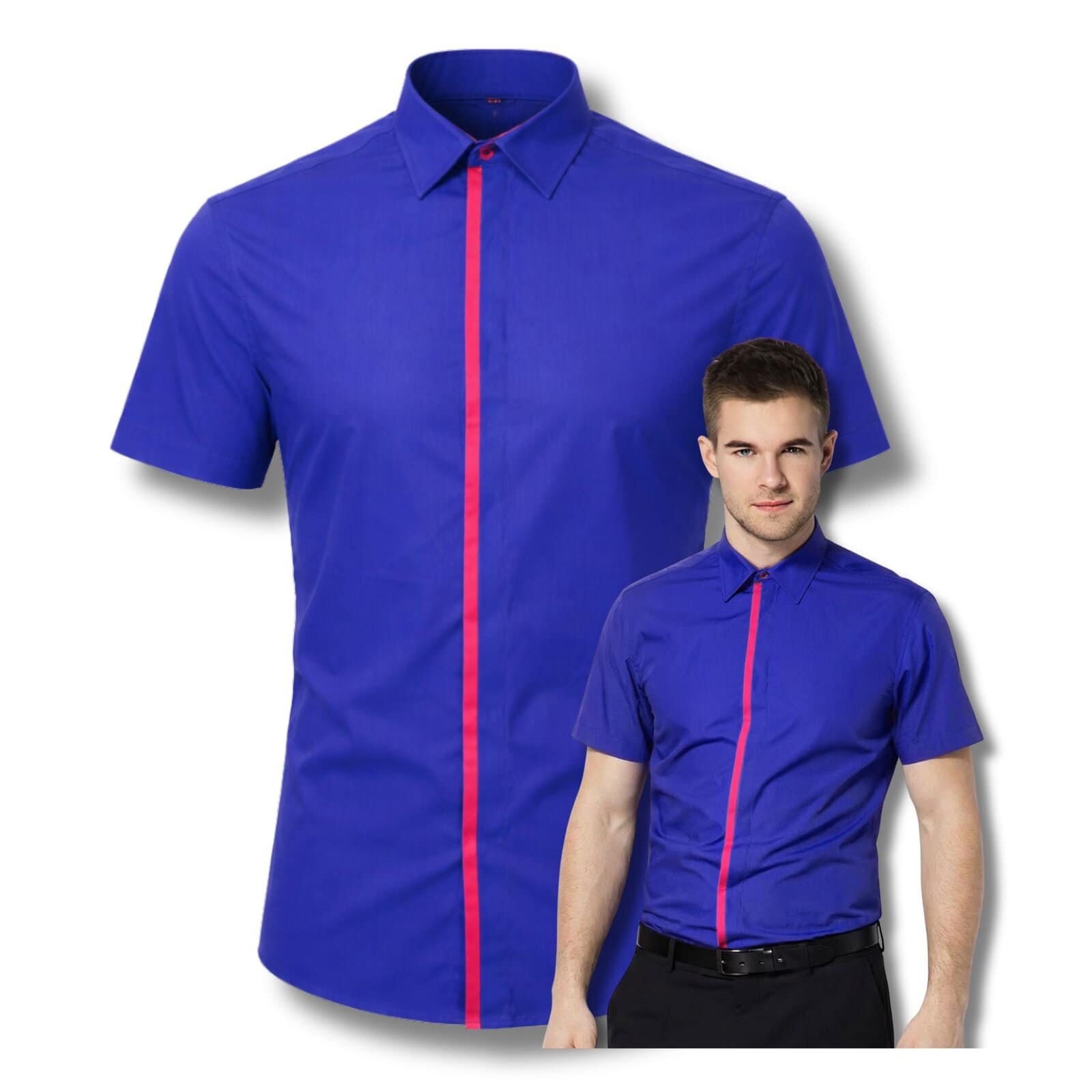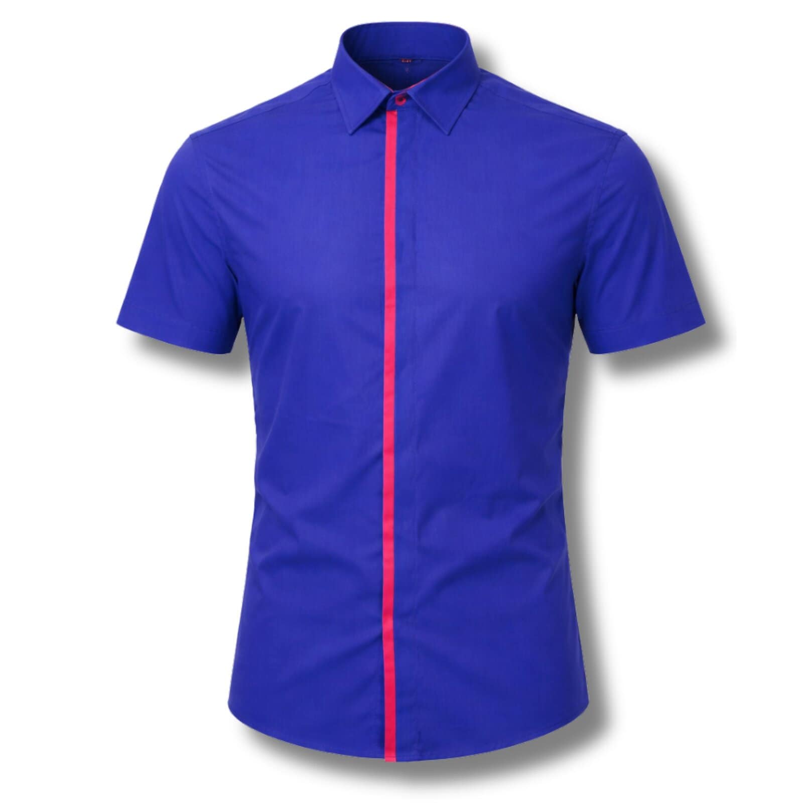 Koszula męska krótki rękaw niebieski kobalt z kontrastową lamówką