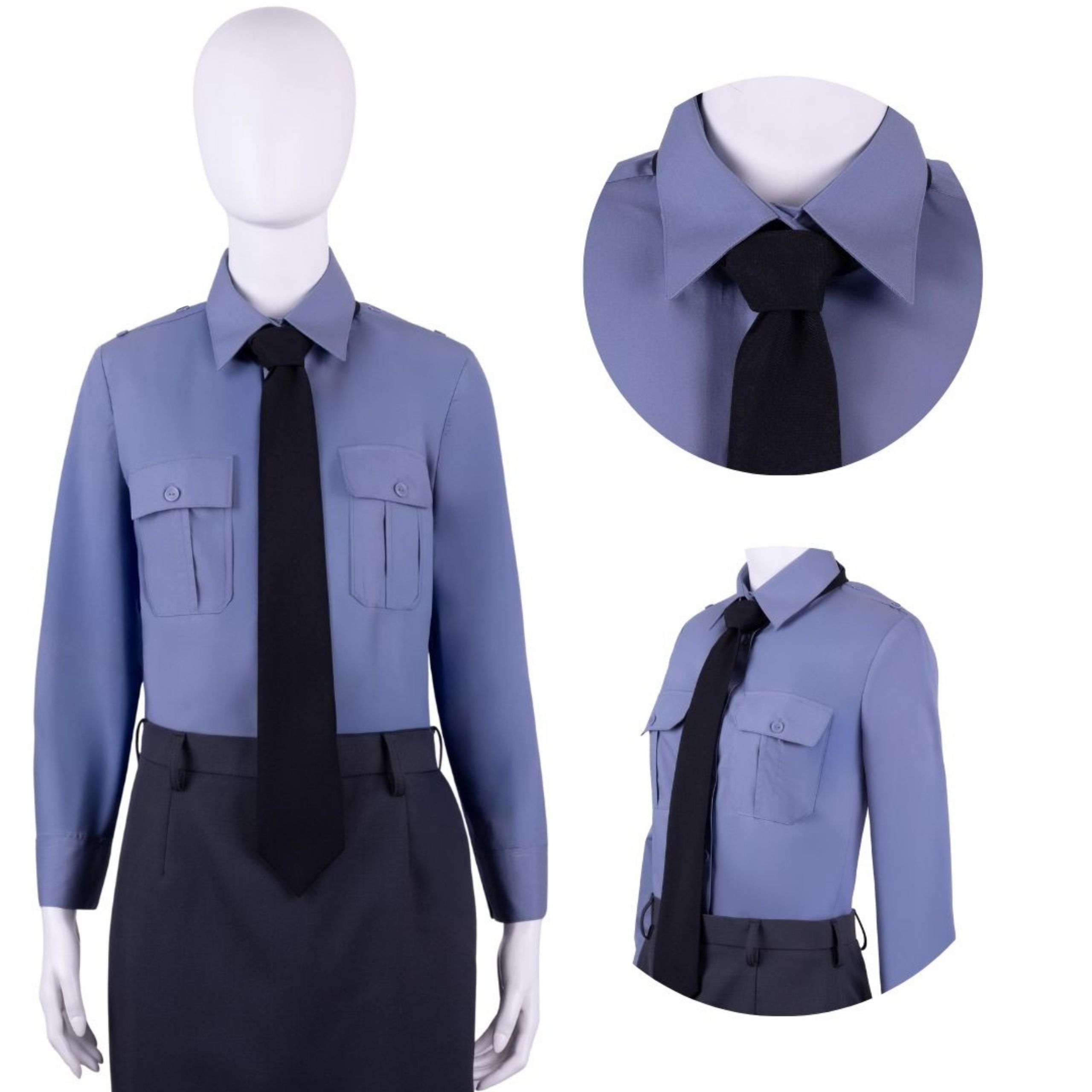 Damska koszulo-bluza Wojska Polskiego 310D/MON w kolorze stalowym, wykonana według oficjalnych norm MON. Wysokiej jakości tkanina z przewagą bawełny zapewnia komfort i trwałość. Idealna do munduru wyjściowego, z długim rękawem, kieszeniami na piersi i miejscem na pagony.