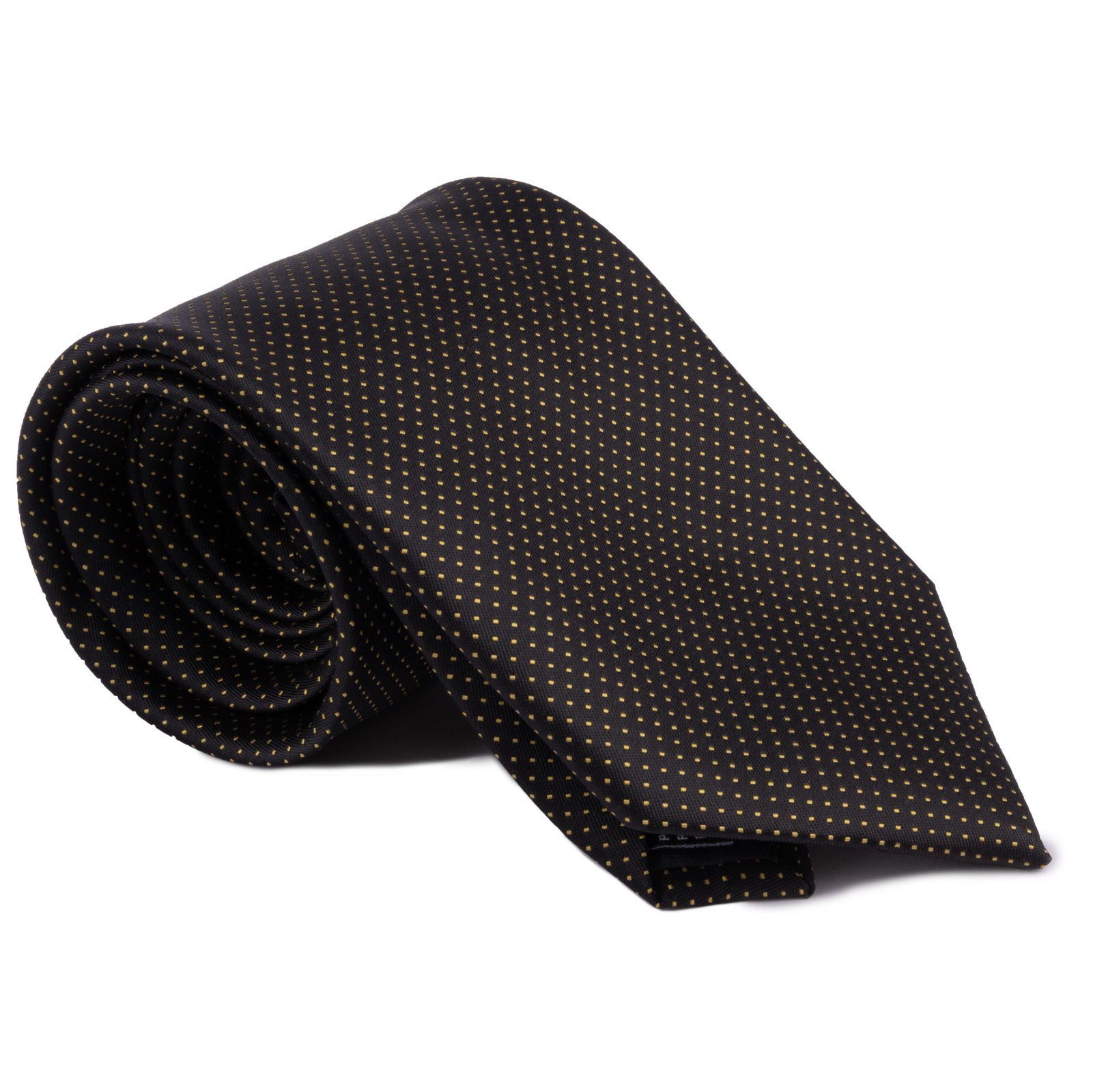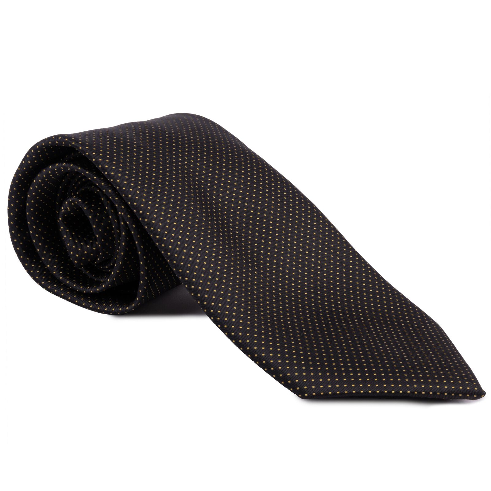 Elegancki męski krawat w czarnym kolorze w żółte kropki i matowym wykończeniu. Wykonany z wysokiej jakości materiału, świetnie się układa i pasuje do stylu biznesowego, do pracy, na święta oraz ważne okazje. To doskonały wybór na każdą okazję.