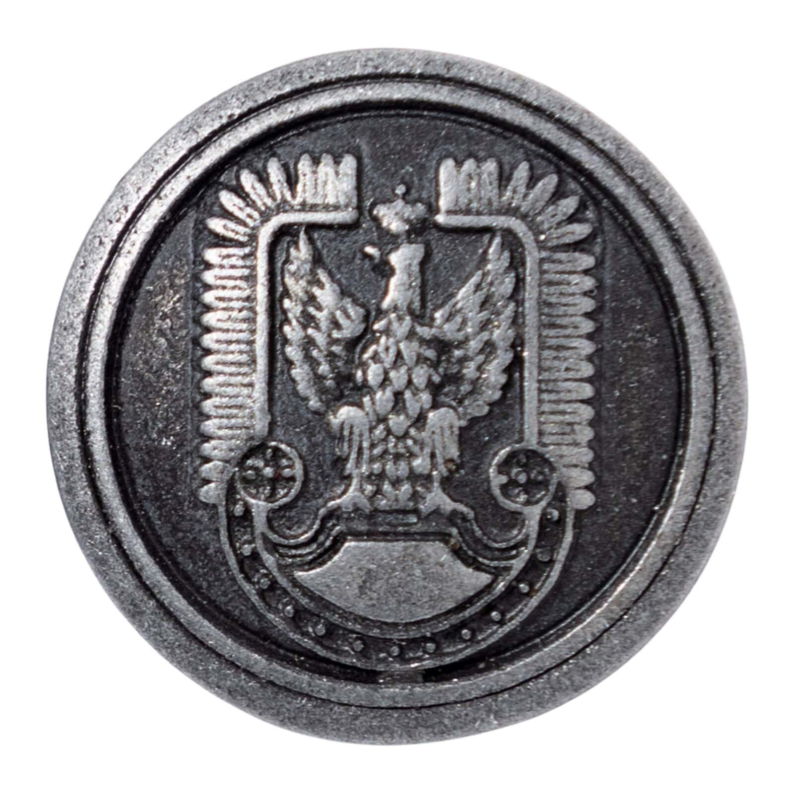 Elegancki, wysokiej jakości guzik metalowy przeznaczony do munduru galowego Sił Powietrznych. Wykonany z wytrzymałego stopu metalu, z precyzyjnym tłoczeniem charakterystycznego emblematu Sił Powietrznych. Idealny do wymiany, renowacji lub rekonstrukcji umundurowania.