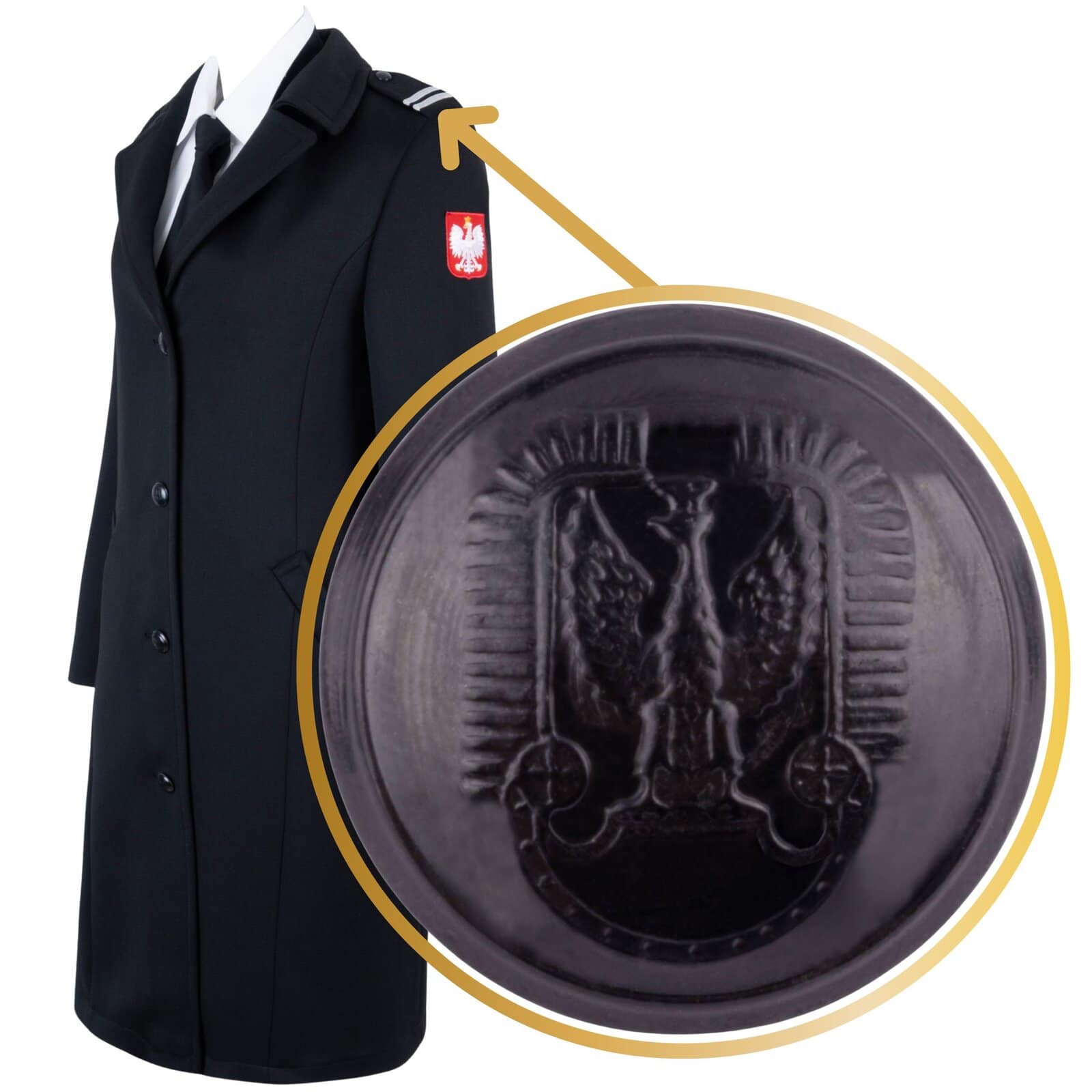 Mały guzik bakelitowy Sił Powietrznych o średnicy 16 mm, przeznaczony do naramienników płaszcza wyjściowego. Czarny kolor oraz precyzyjne tłoczenie orła zapewniają estetyczny, reprezentacyjny wygląd i spójność z oficjalnym umundurowaniem. Trwały materiał gwarantuje odporność na użytkowanie i łatwy montaż poprzez przyszycie.