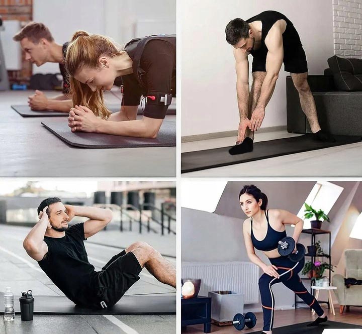 - Ćwiczenia wzmacniające: pompki, brzuszki, przysiady, plank – pełna amortyzacja dla stawów