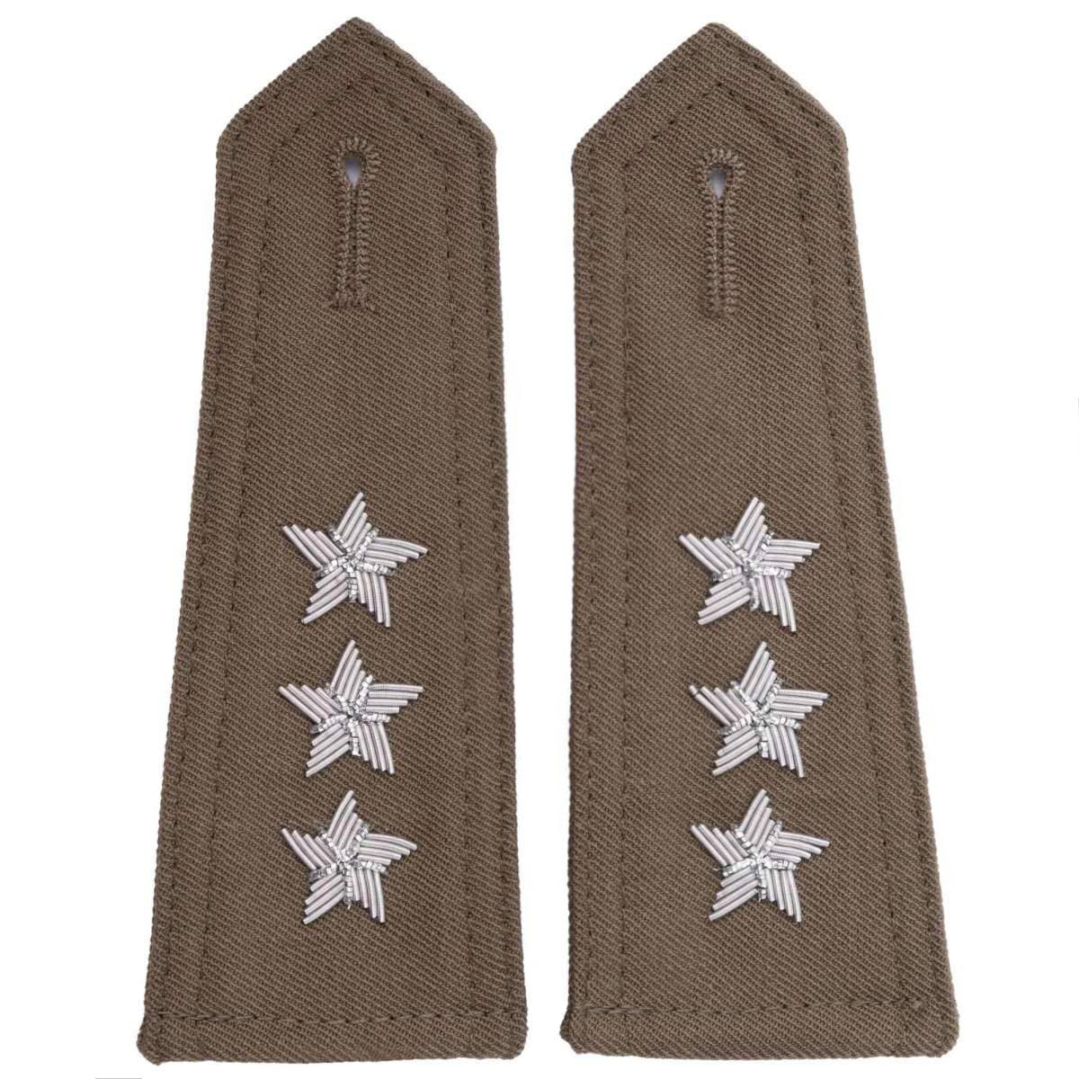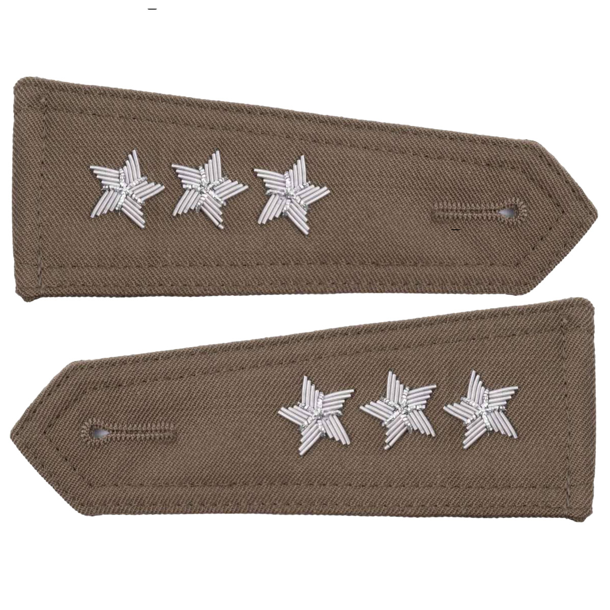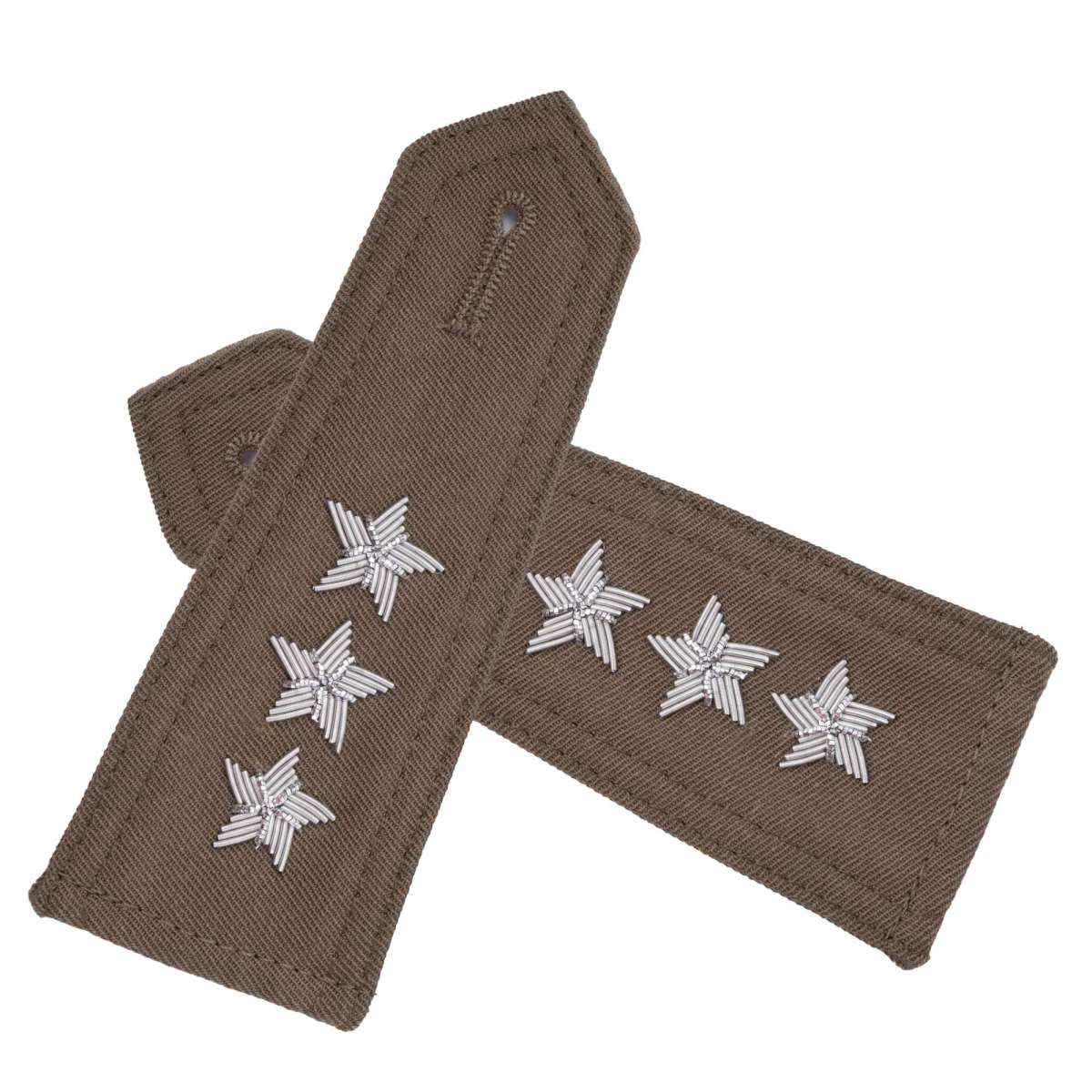Eleganckie naramienniki (pagony) w kolorze khaki, wykonane z wysokiej jakości gabardyny z precyzyjnym haftem ręcznym. Przeznaczone do koszulobluzy, wyposażone w otwory na guziki dla łatwego mocowania na ramionach koszulo-bluzy.