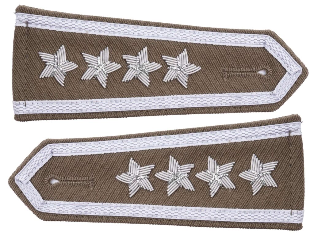 Eleganckie naramienniki (pagony) w kolorze khaki, wykonane z wysokiej jakości gabardyny z precyzyjnym haftem ręcznym. Przeznaczone do koszulobluzy, wyposażone w otwory na guziki dla łatwego mocowania na ramionach koszulo-bluzy.