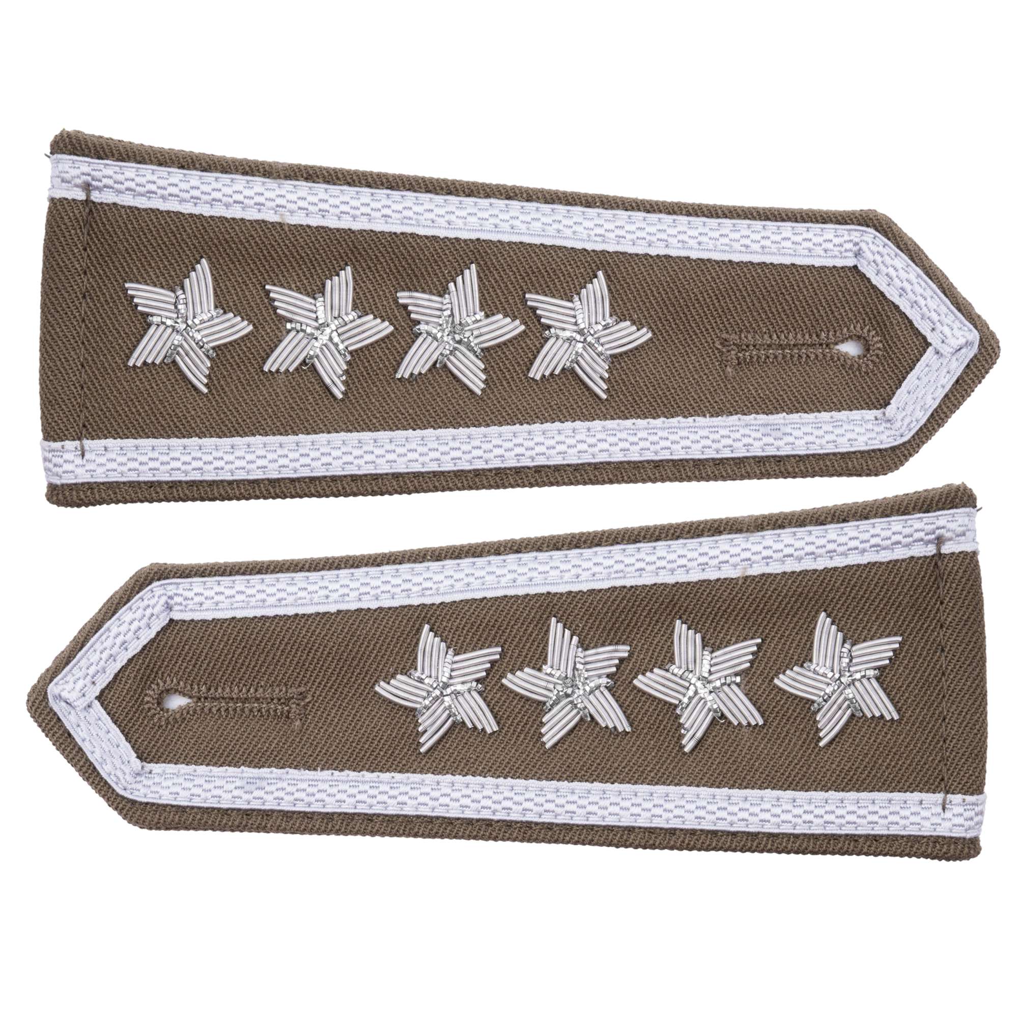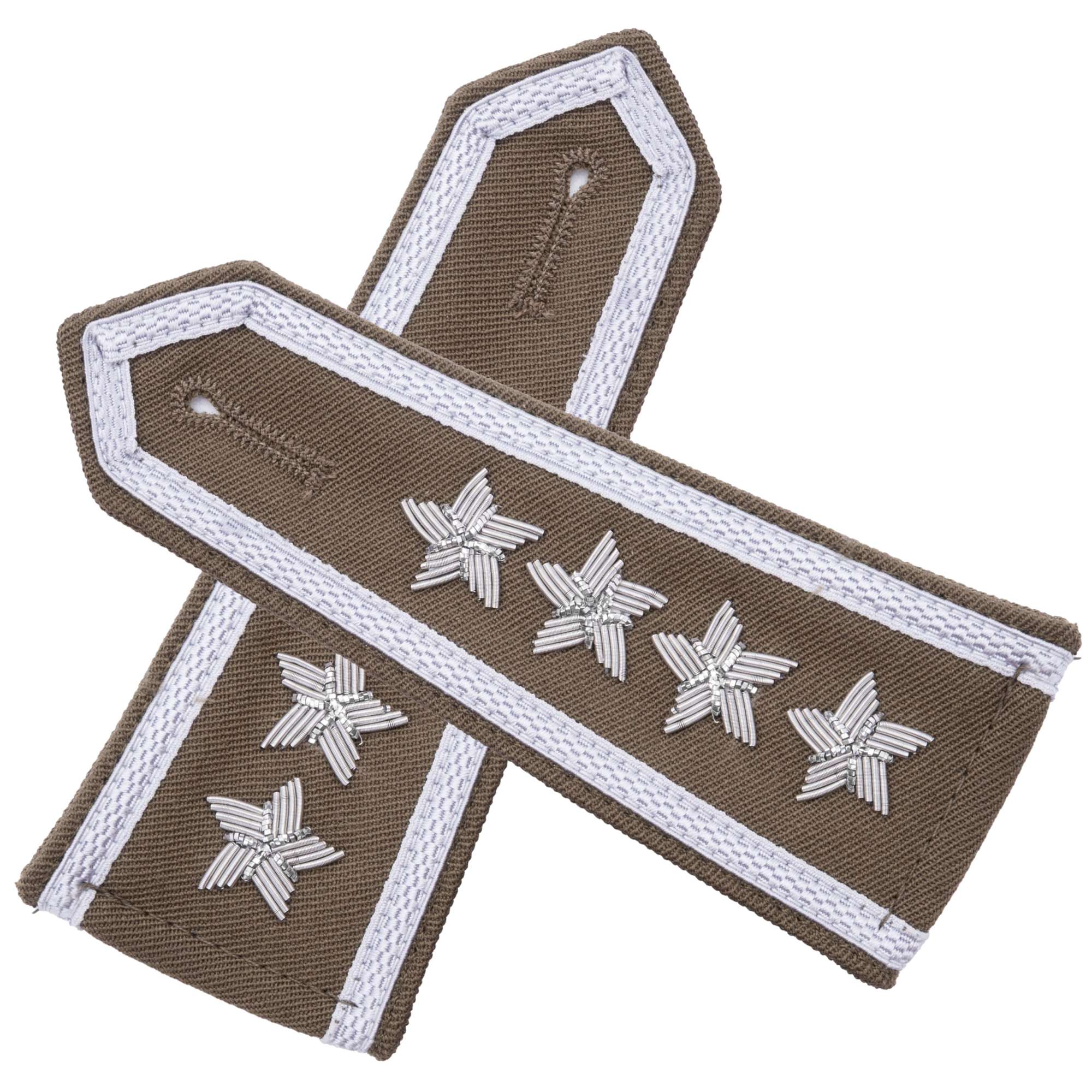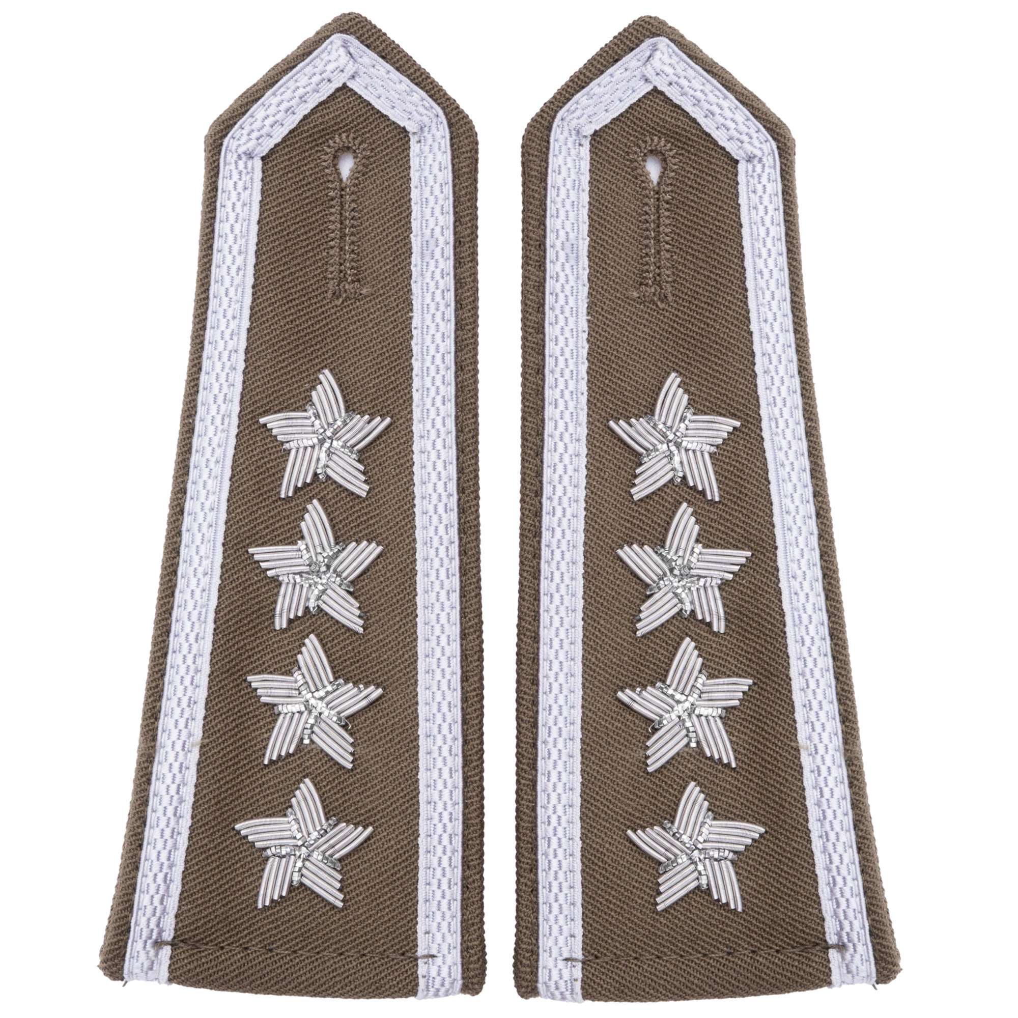 Eleganckie naramienniki (pagony) w kolorze khaki, wykonane z wysokiej jakości gabardyny z precyzyjnym haftem ręcznym. Przeznaczone do koszulobluzy, wyposażone w otwory na guziki dla łatwego mocowania na ramionach koszulo-bluzy.