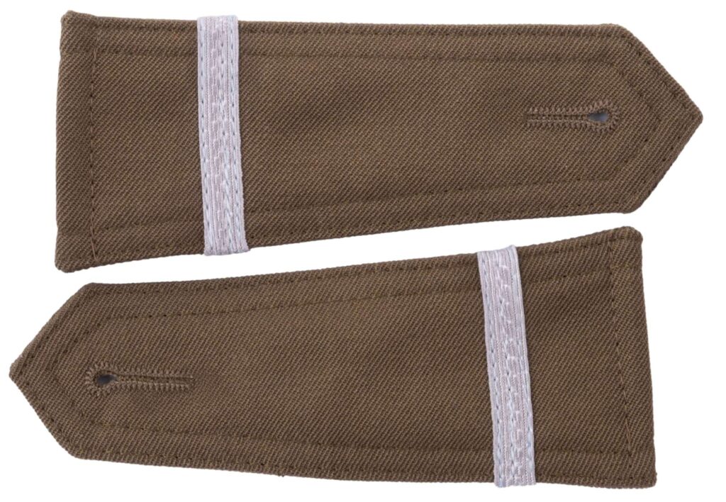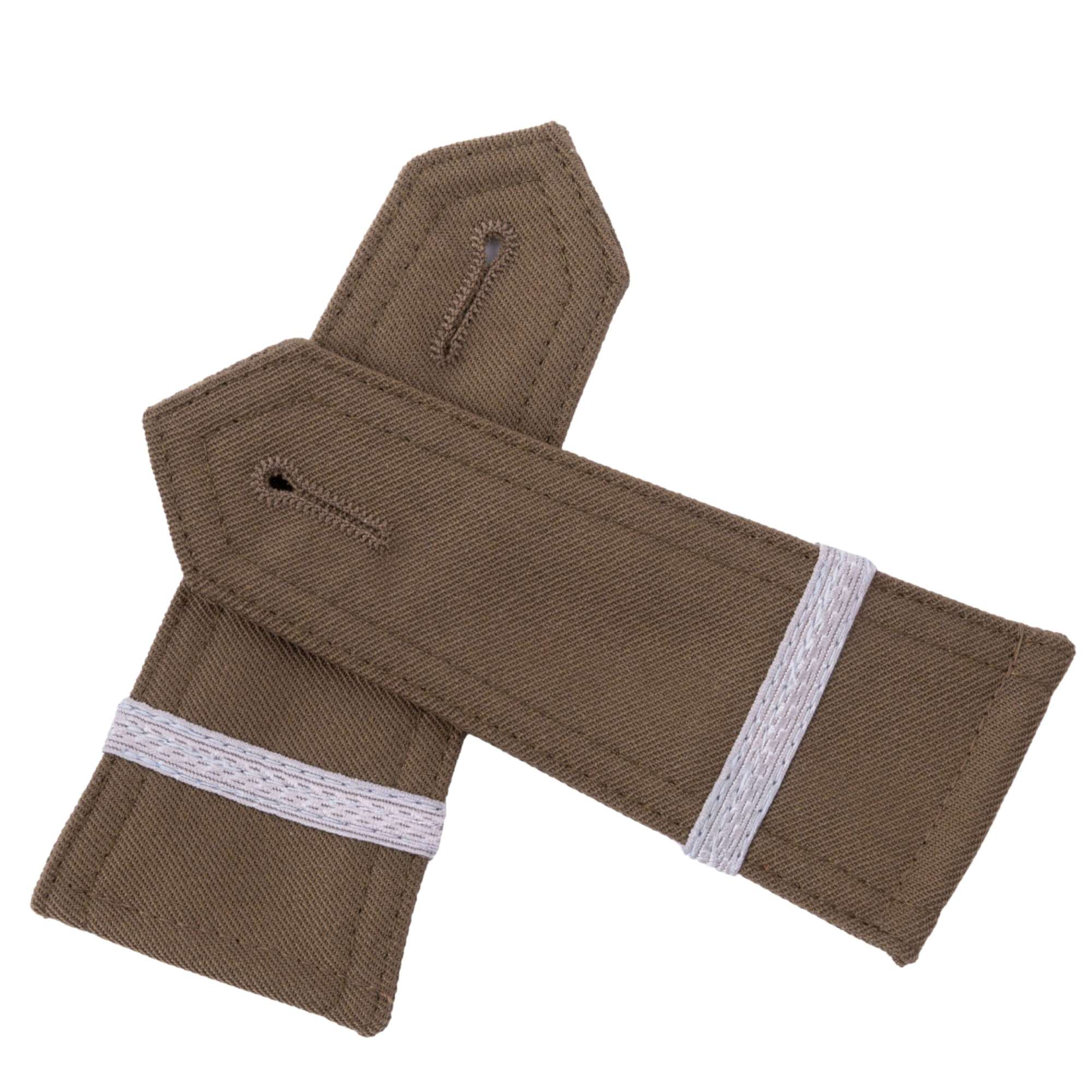 Eleganckie naramienniki (pagony) w kolorze khaki, wykonane z wysokiej jakości gabardyny z precyzyjnym haftem ręcznym. Przeznaczone do koszulobluzy, wyposażone w otwory na guziki dla łatwego mocowania na ramionach koszulo-bluzy.