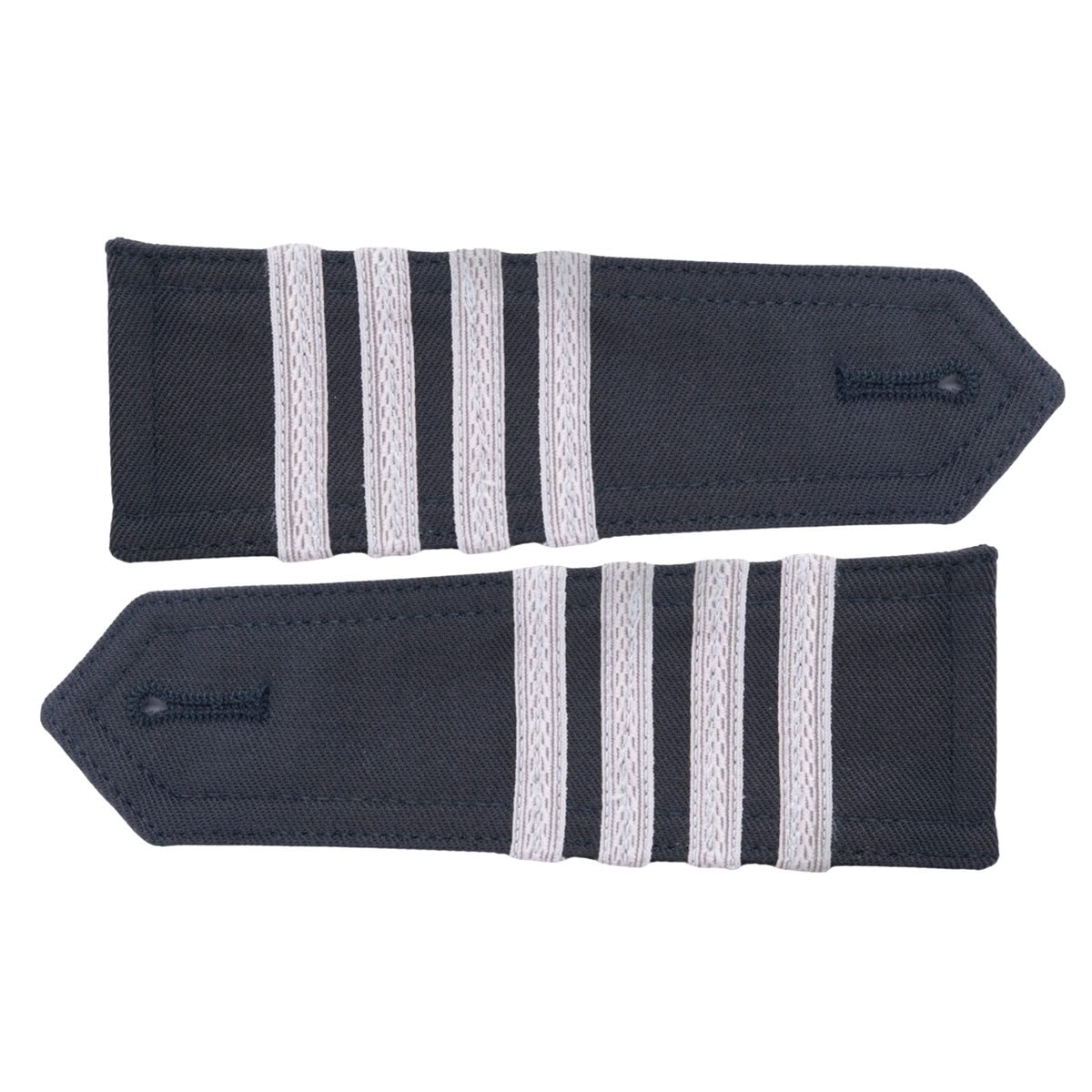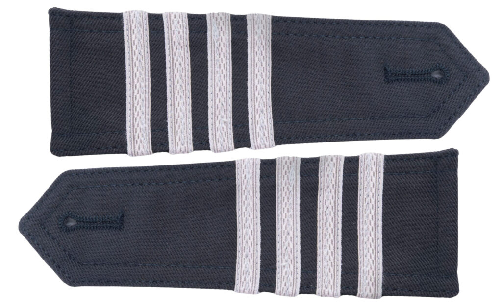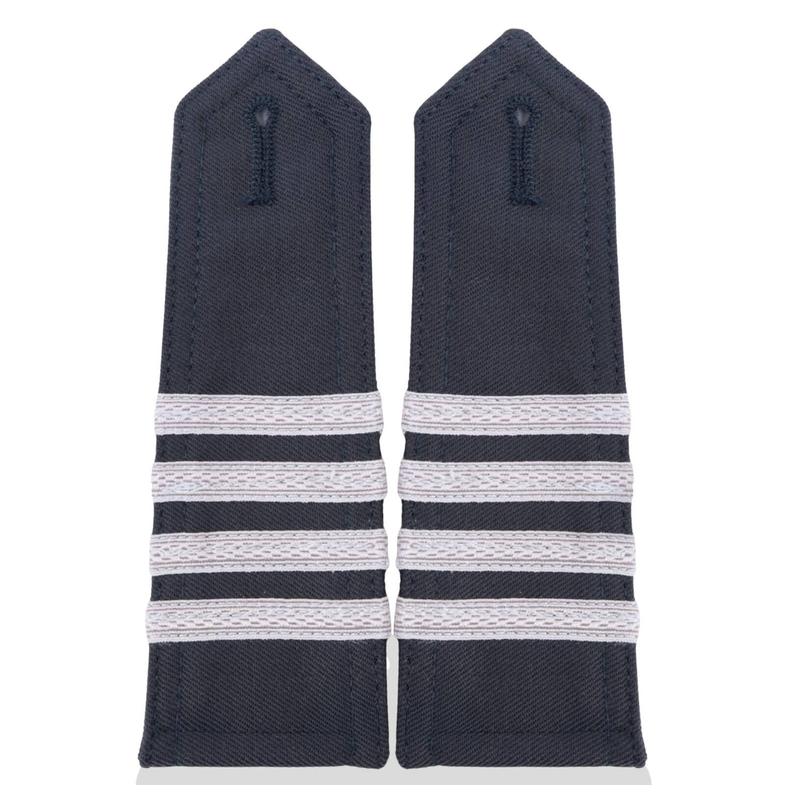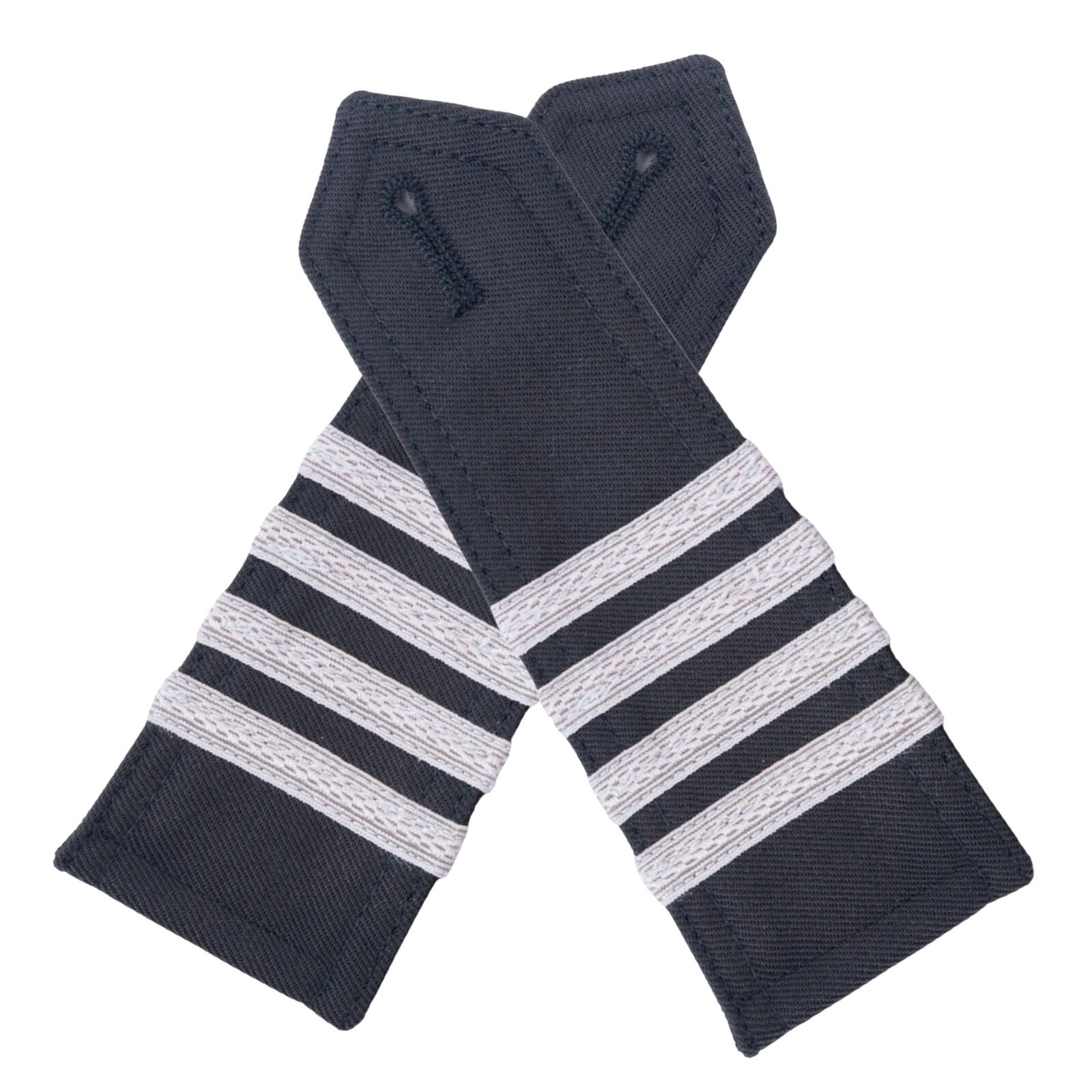Eleganckie naramienniki (pagony) w kolorze stalowym, wykonane z wysokiej jakości gabardyny z precyzyjnym haftem ręcznym. Przeznaczone do koszulobluzy, wyposażone w otwory na guziki dla łatwego mocowania na ramionach koszulo-bluzy.