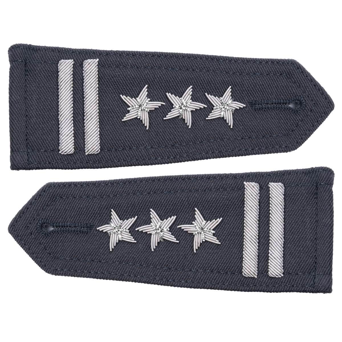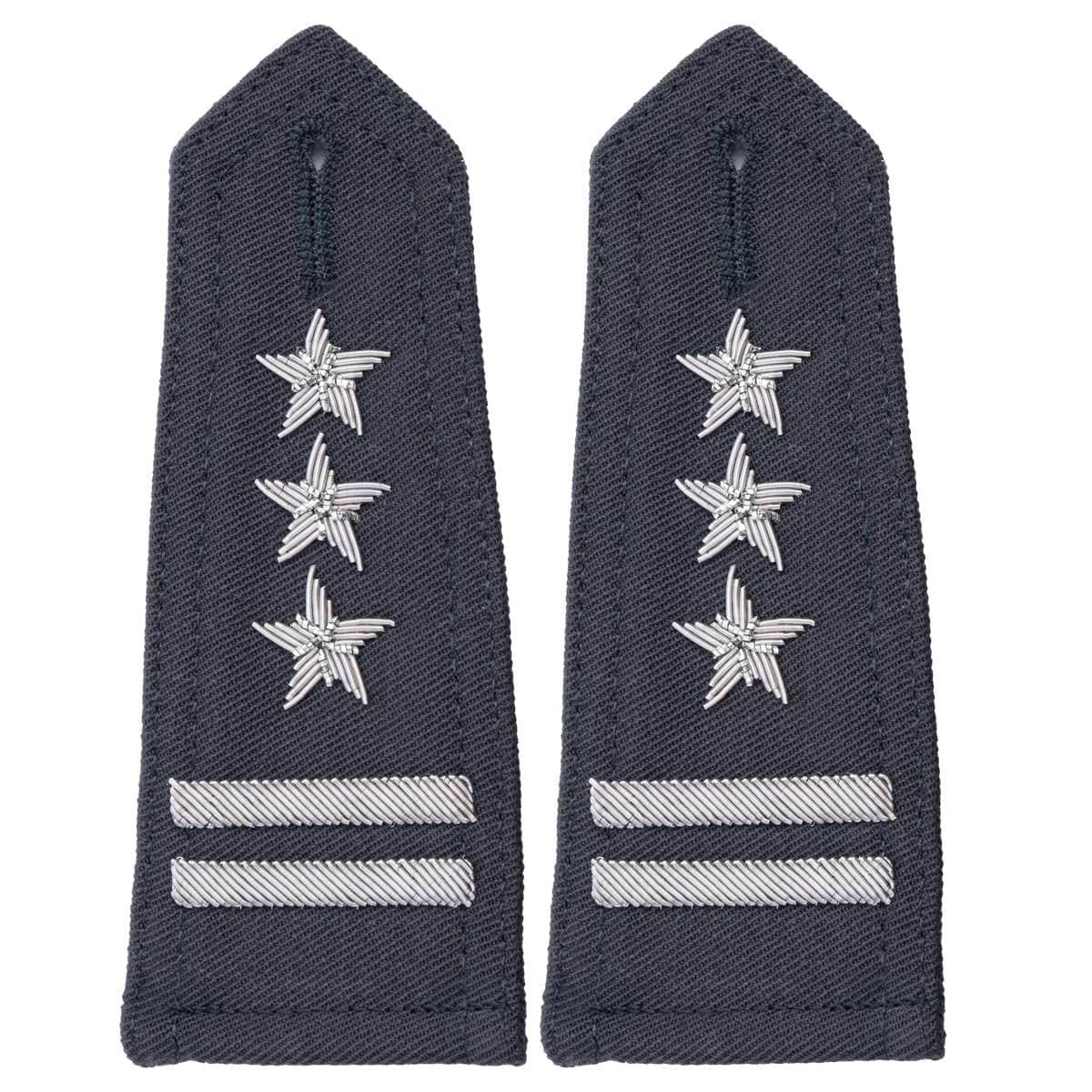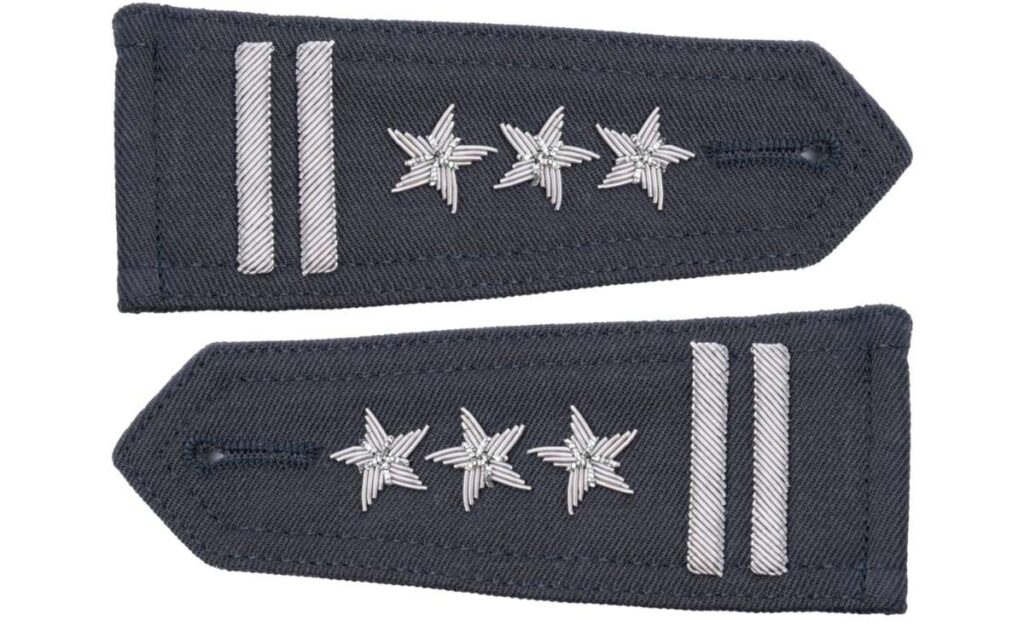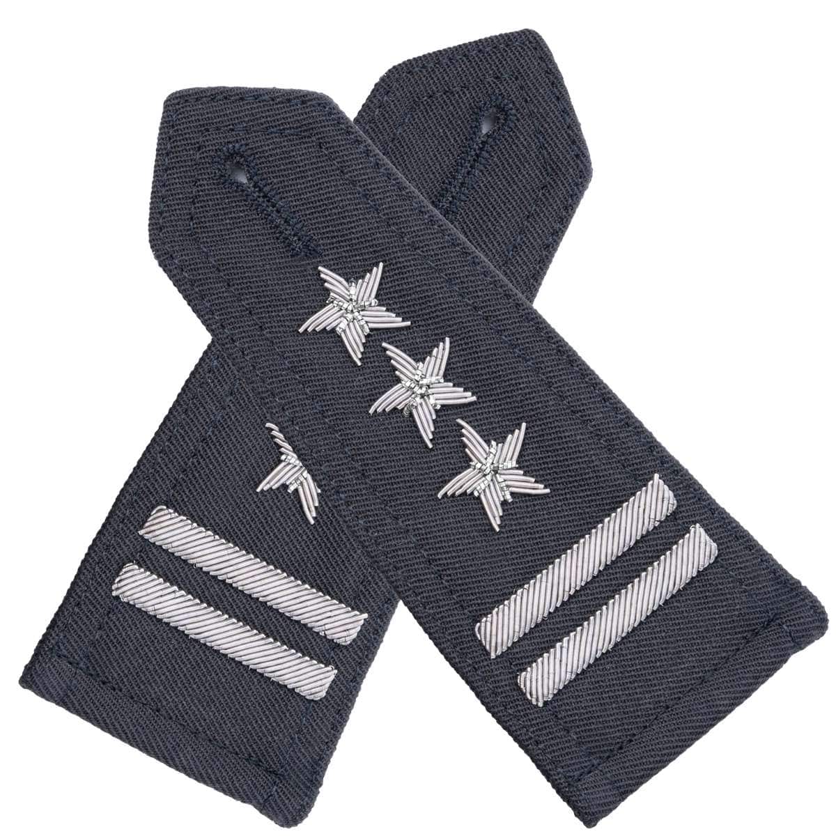 Eleganckie naramienniki (pagony) w kolorze stalowym, wykonane z wysokiej jakości gabardyny z precyzyjnym haftem ręcznym. Przeznaczone do koszulobluzy, wyposażone w otwory na guziki dla łatwego mocowania na ramionach koszulo-bluzy.