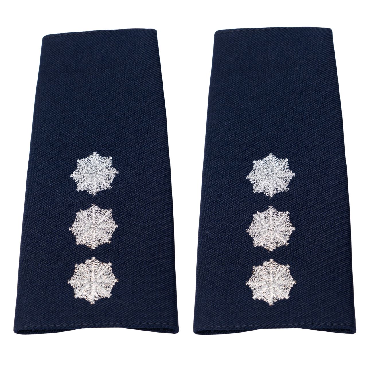 Pagony pochewki Policji – trwałe, granatowe, wykonane według oficjalnych standardów. Podkreślają stopień służbowy i profesjonalizm funkcjonariusza.