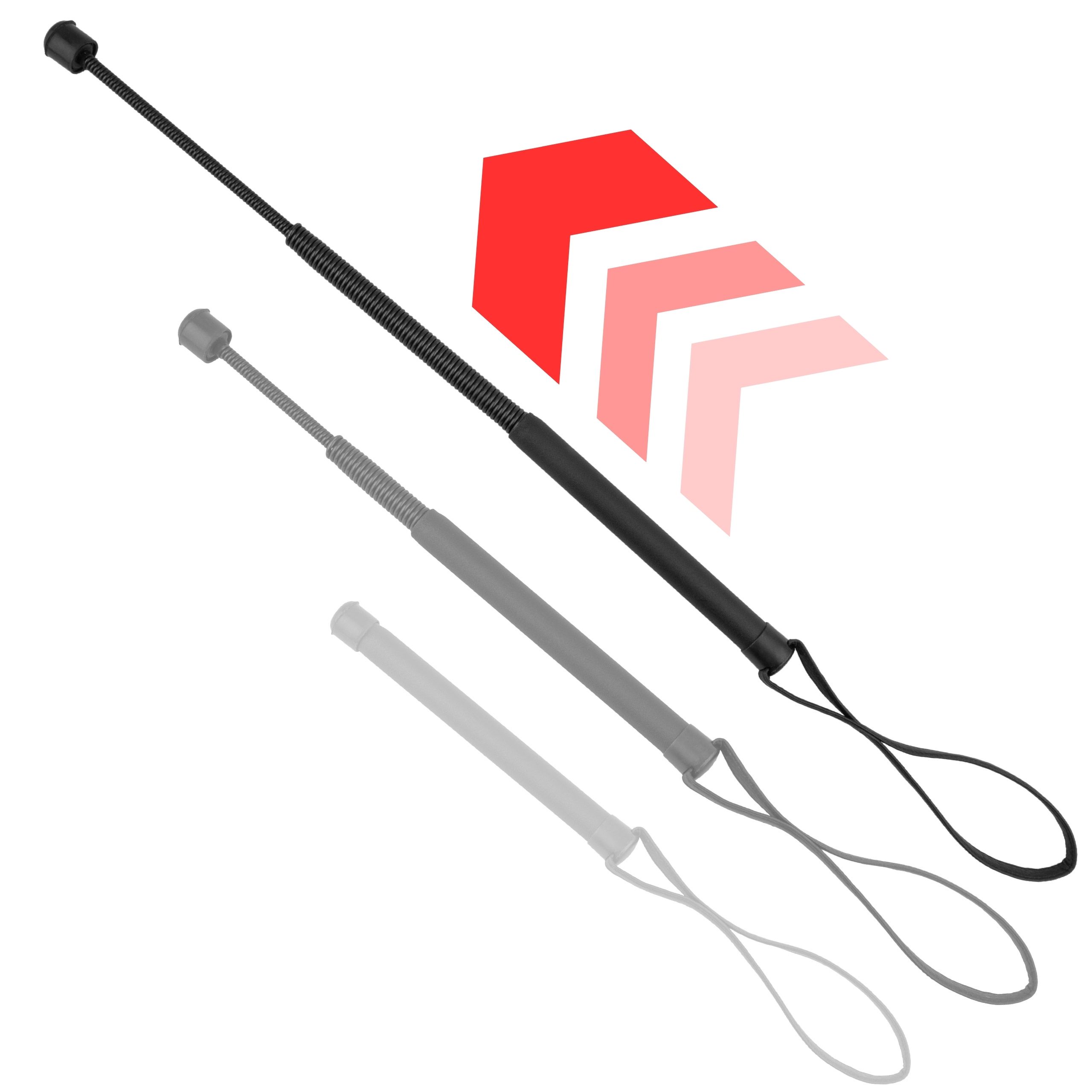 Pałka otwierana jest dynamicznym ruchem nadgarstka – segmenty wysuwają się i blokują mechanicznie (tzw. friction lock). Do złożenia należy uderzyć czubkiem o twardą powierzchnię.