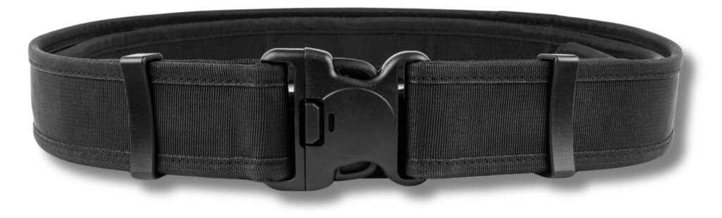 Tak — to profesjonalny pas policyjny / pas oporządzeniowy zaprojektowany pod stałe obciążenie (kabura, ładownice, akcesoria). Pas wewnętrzny z rzepem stabilizuje całość i zapobiega przesuwaniu.