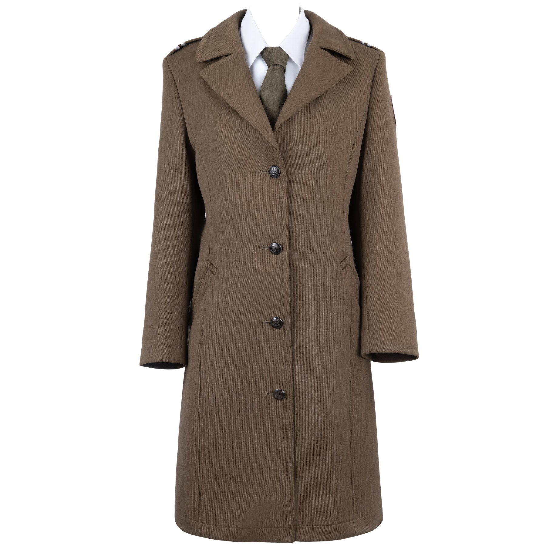 Płaszcz damski według wzoru 215D/MON to oficjalny element umundurowania Wojsk Lądowych, przeznaczony do całorocznego noszenia. Wykonany z wysokiej jakości tkaniny w kolorze khaki, zaprojektowany z myślą o połączeniu elegancji z funkcjonalnością. Szyty na miarę.