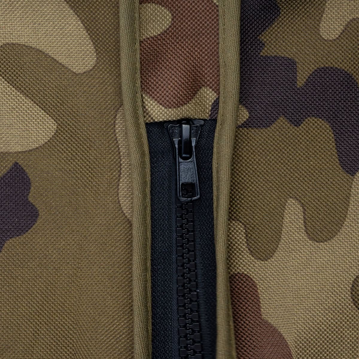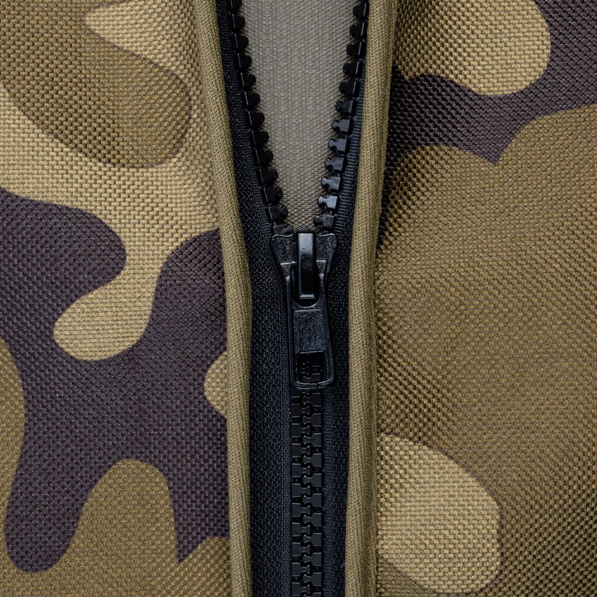 Solidny i wytrzymały pokrowiec wodoodporny. Kolor: Moro Wymiary: 63 x 100 cm. Z zamkiem błyskawicznym i z otworem na wieszak.