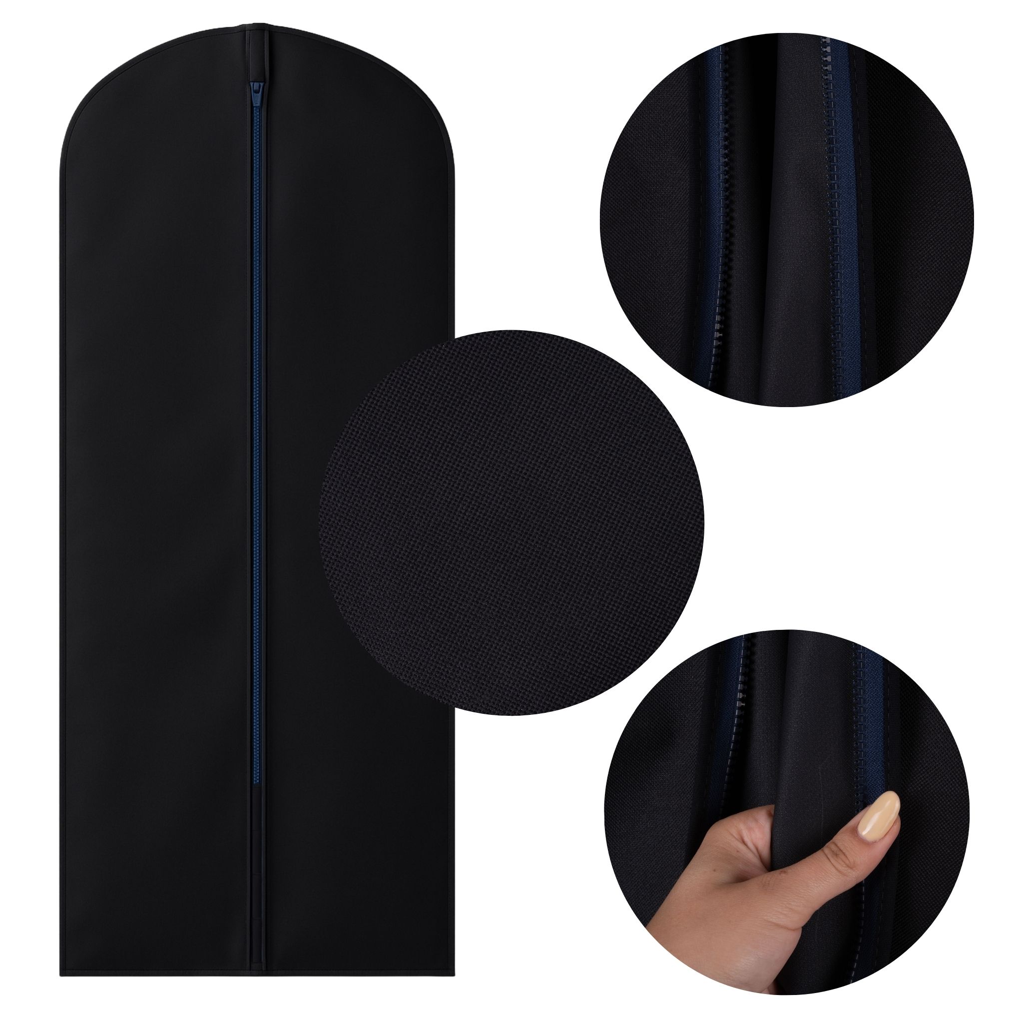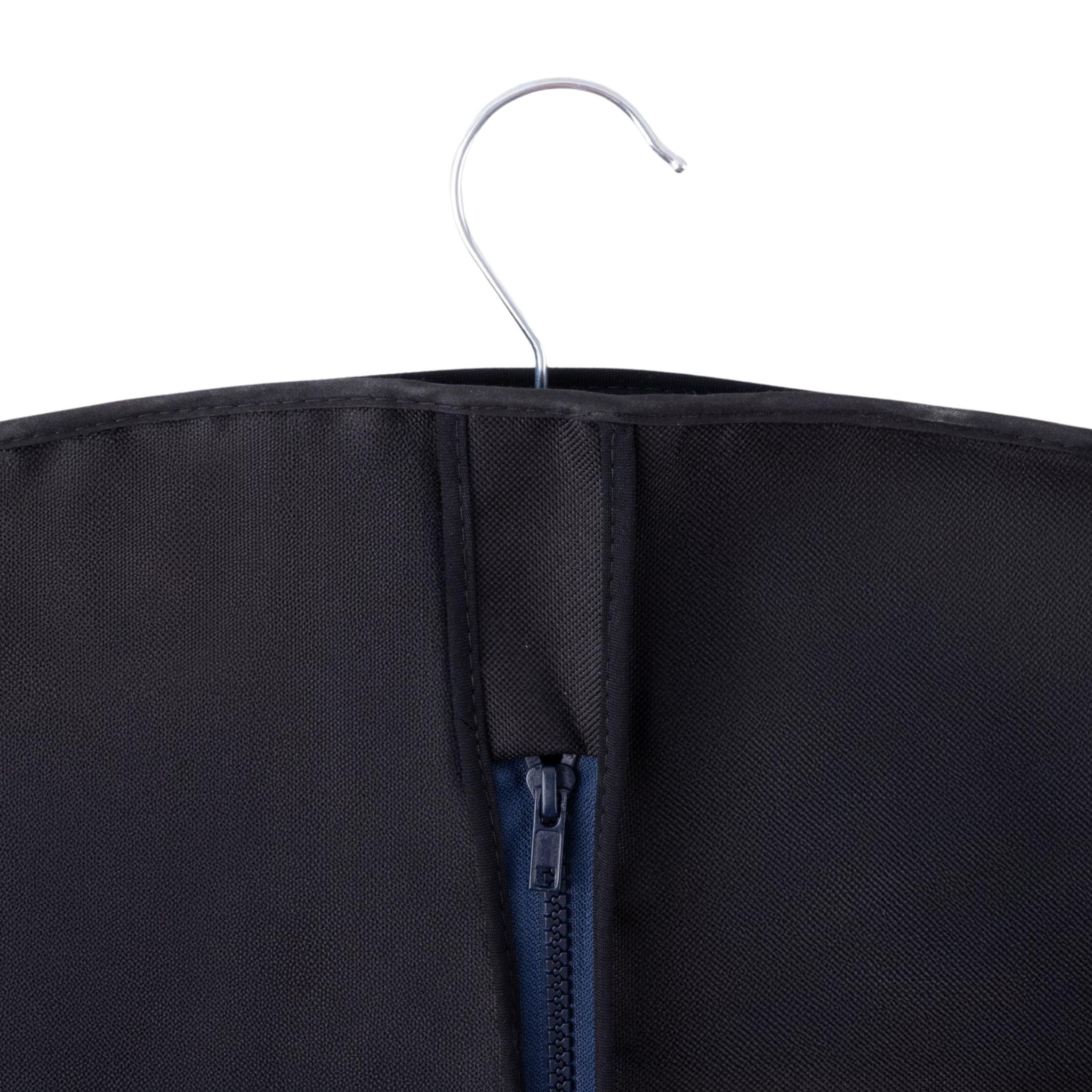 Zadbaj o swoje ubrania w każdej sytuacji – w domu, w pracy, w delegacji czy podczas wyjazdów służbowych. Nasz czarny pokrowiec z granatowym zamkiem to praktyczne i eleganckie rozwiązanie do przechowywania mundurów, garniturów, kurtek, czy koszul. Wykonany z lekkiej, a zarazem bardzo wytrzymałej tkaniny syntetycznej, pokrowiec skutecznie chroni odzież przed kurzem, wilgocią i zabrudzeniami. Dzięki zamkowi błyskawicznemu na całej długości zapewnia łatwy dostęp do wnętrza, a otwór na haczyk umożliwia wygodne zawieszenie w szafie lub podczas podróży