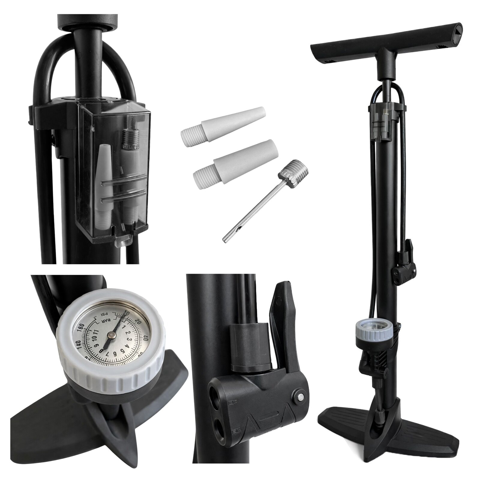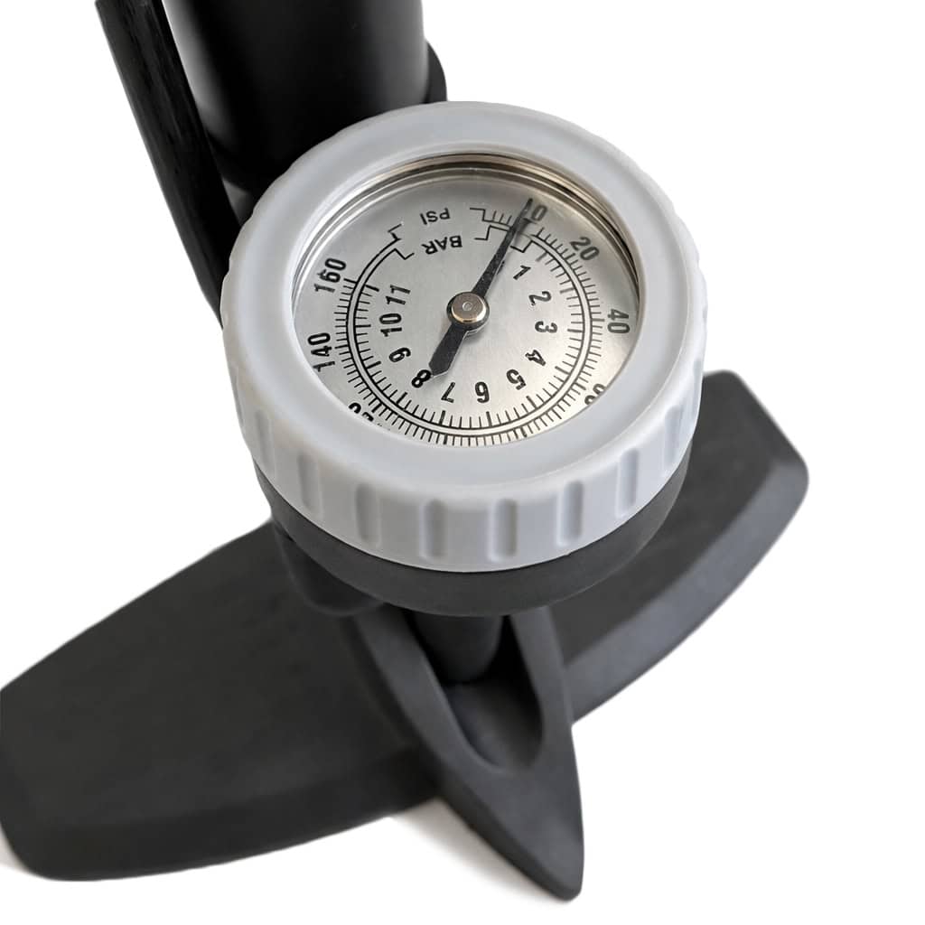 - Precyzyjny manometr – kontrolujesz ciśnienie w czasie pompowania