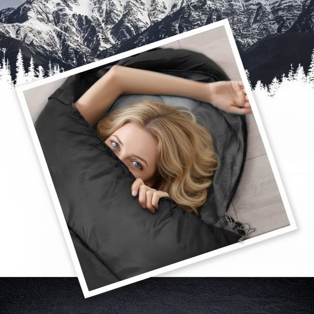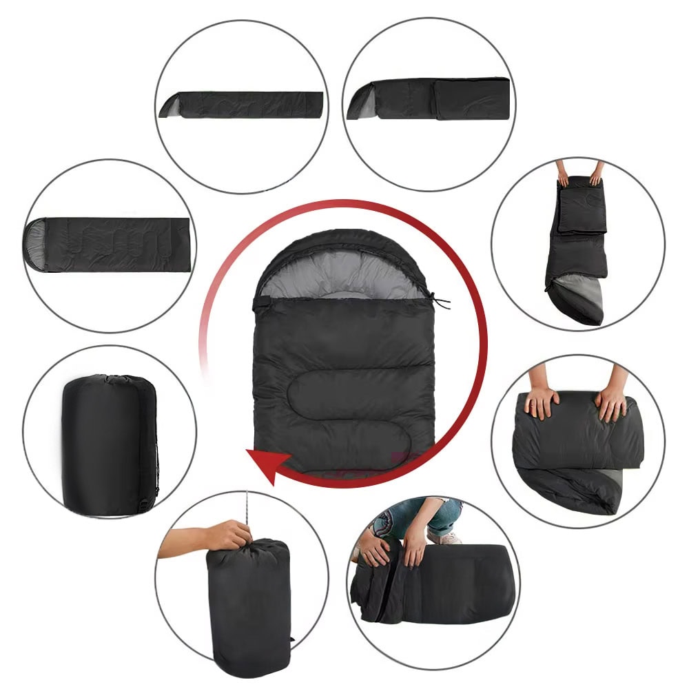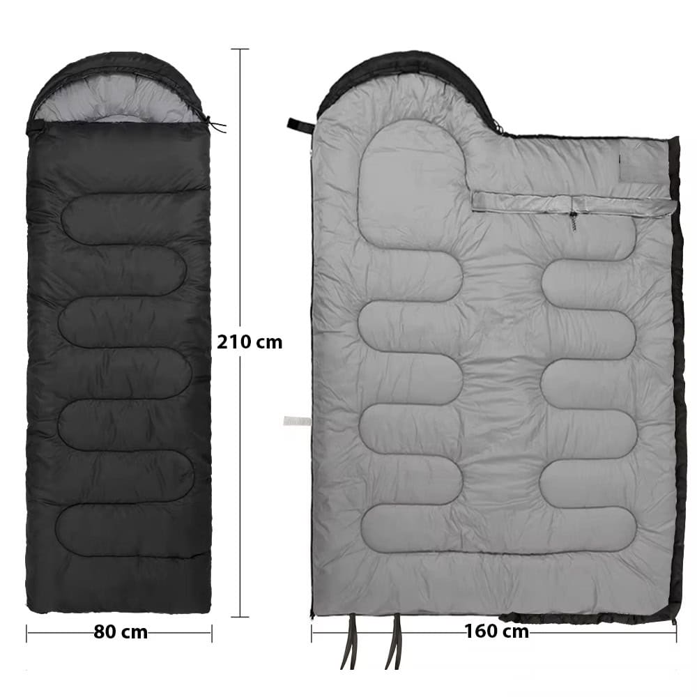 Śpiwór mumia 2w1 210×80 cm czarny – ciepły kaptur + pokrowiec, idealny na biwak i survival