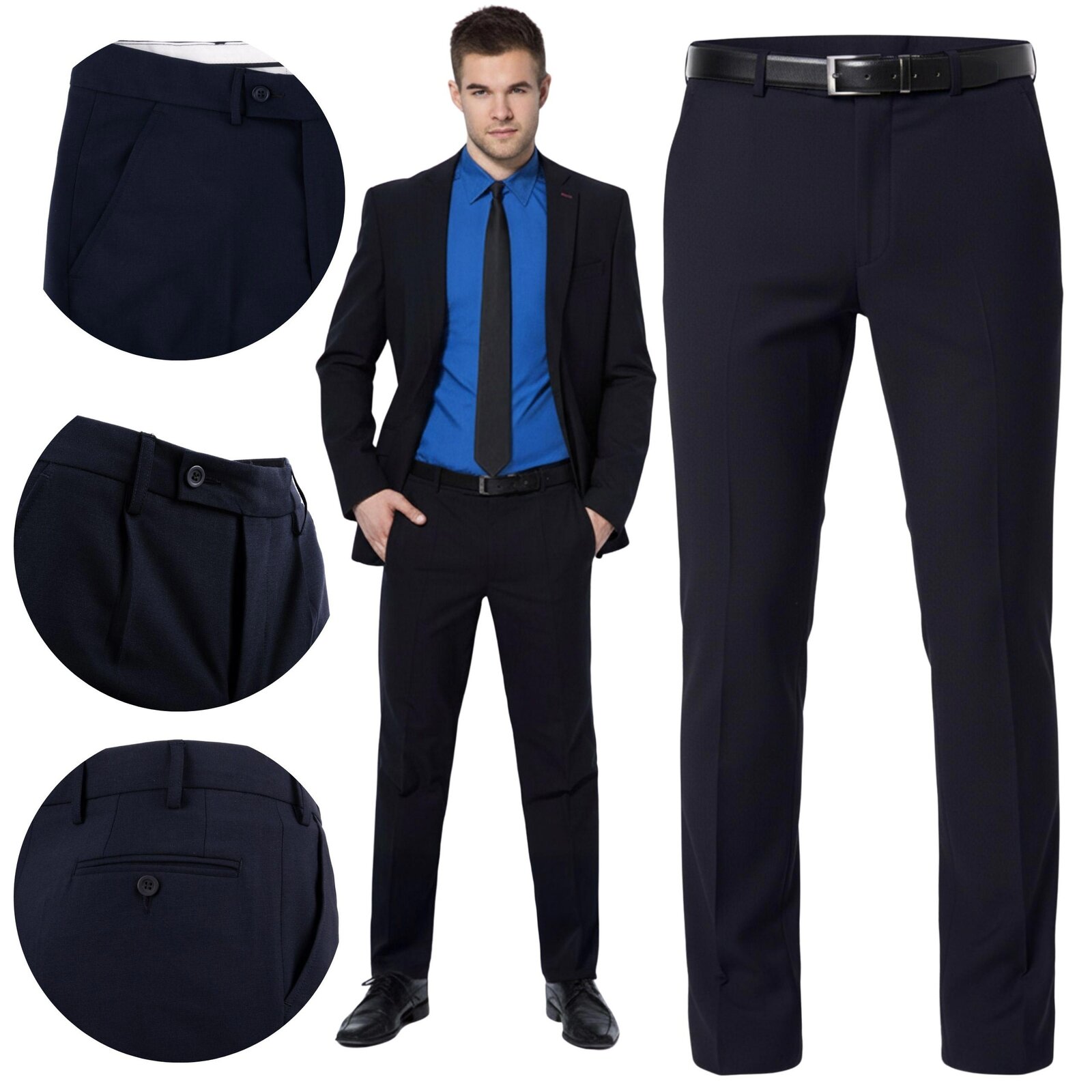 Wygodne eleganckie męskie spodnie w kolorze dark navy blue, krój klasyczny prosty.