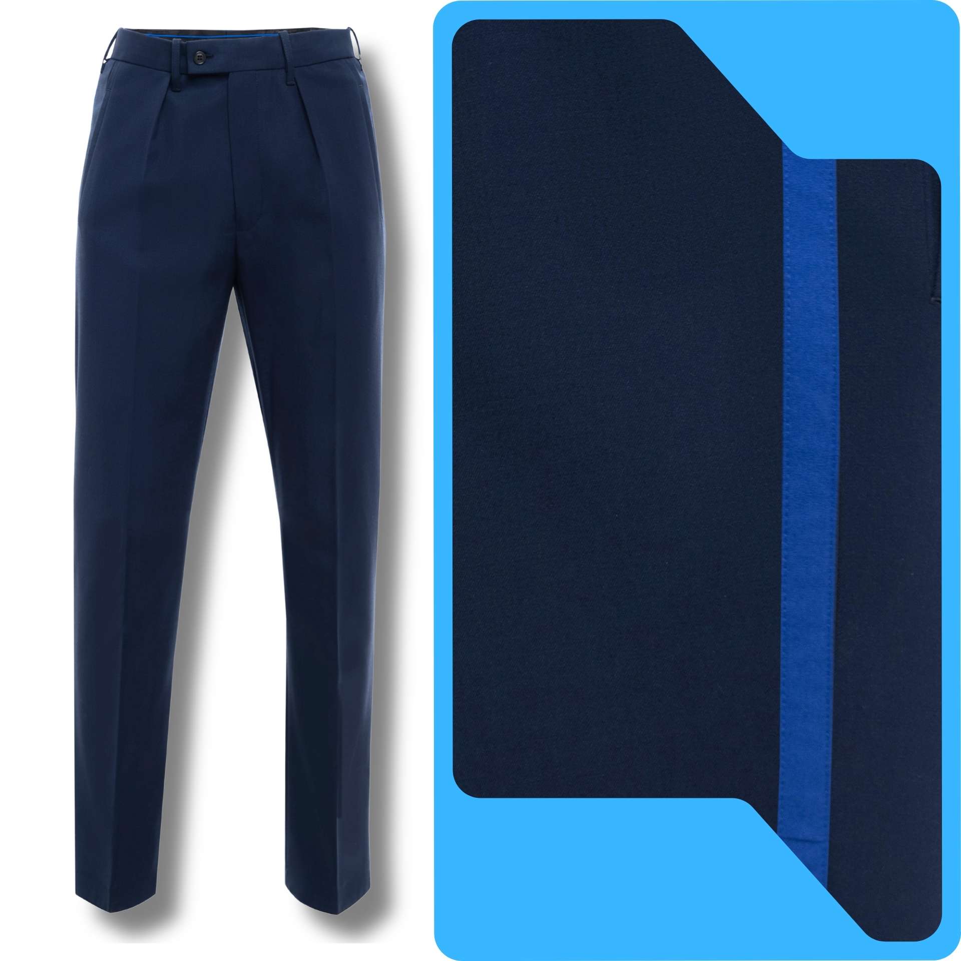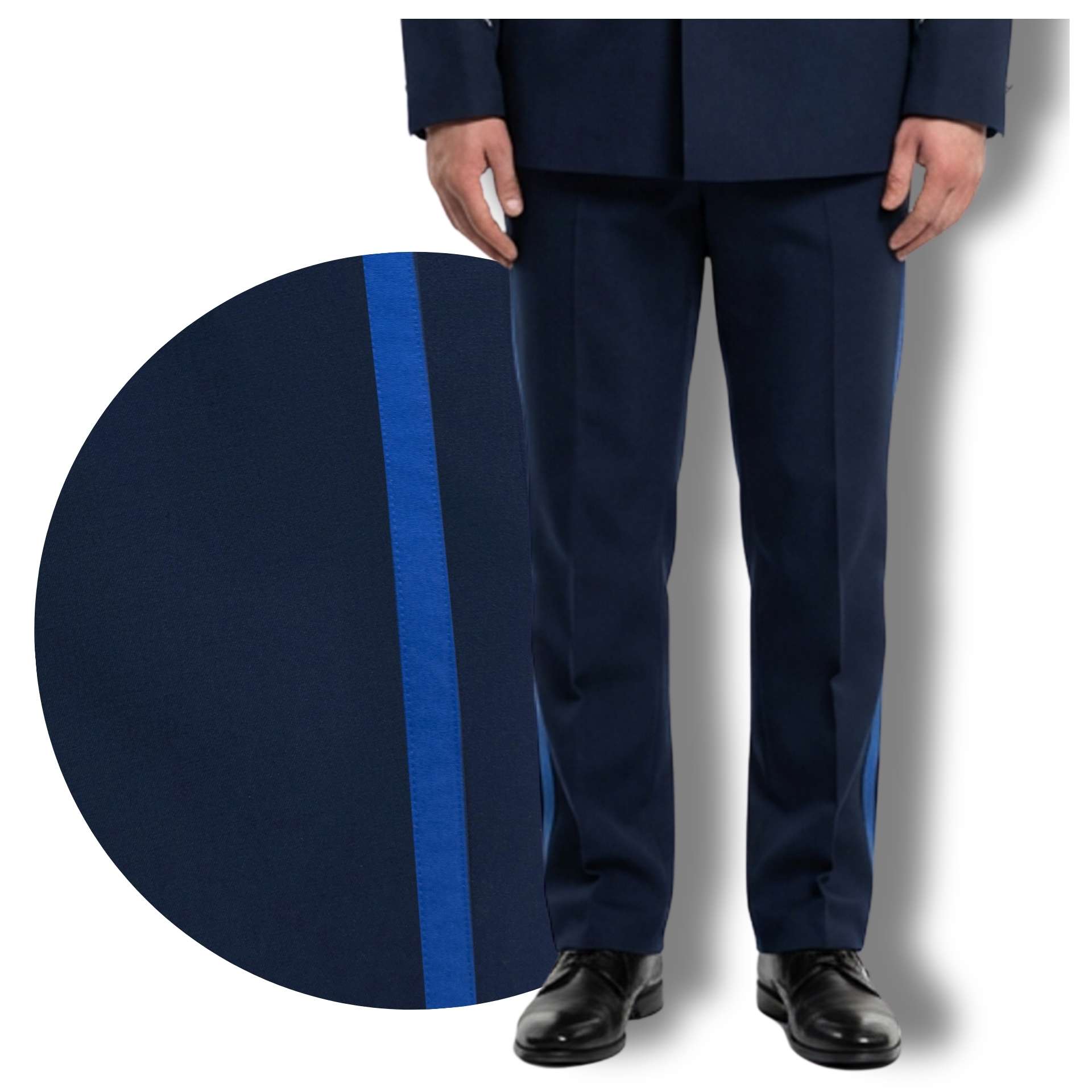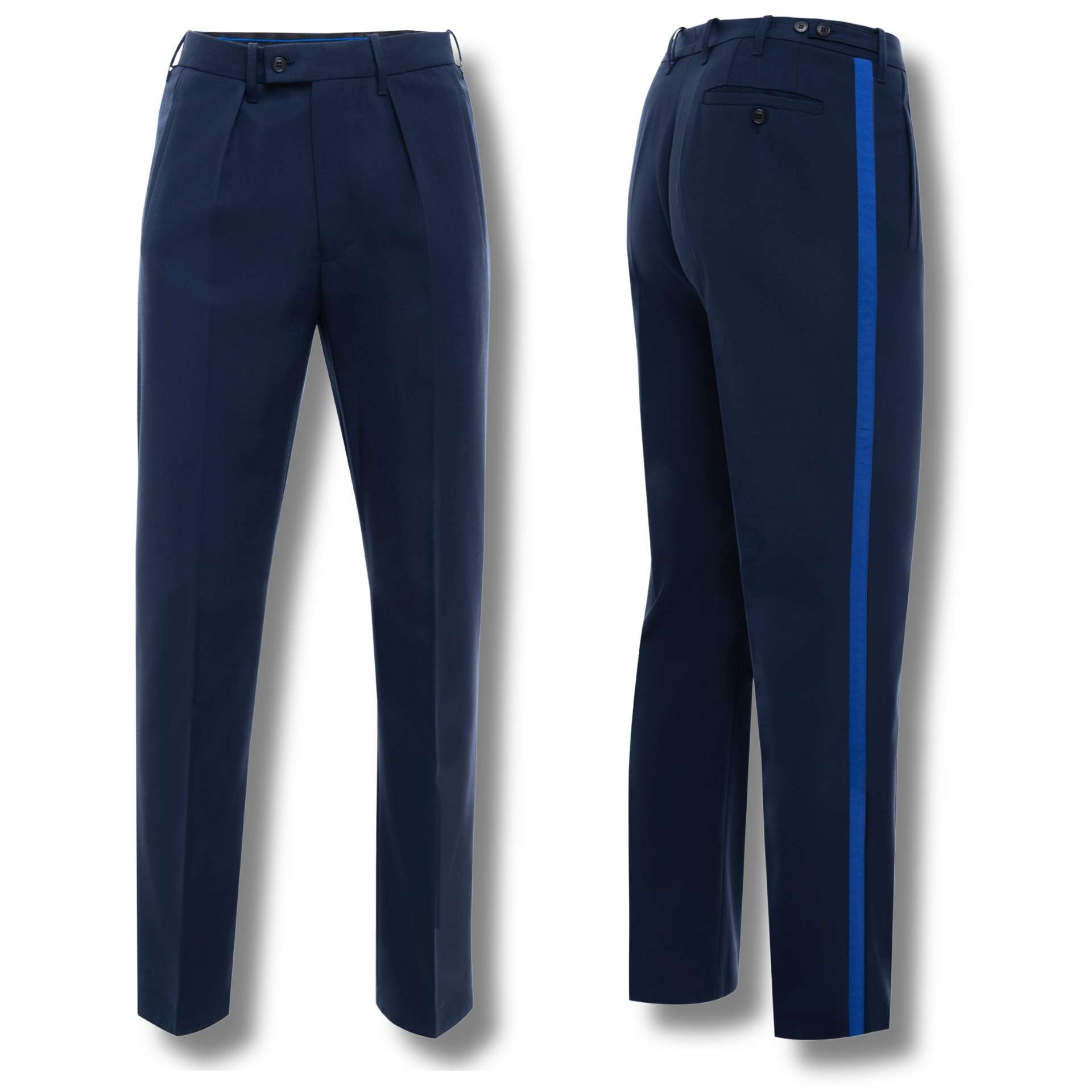 Męskie spodnie wyjściowe Policji – nowy wzór uszyty według nowego regulaminu umundurowania KGP. Elegancki fason, dopasowany do sylwetki, gwarantuje profesjonalny wygląd w każdej sytuacji służbowej. Spodnie uszyte z wysokiej jakości tkaniny gabardynowej zapewniają trwałość i komfort noszenia. Stanowią element umundurowania wyjściowego – idealne na uroczystości, oficjalne wydarzenia i wystąpienia reprezentacyjne.