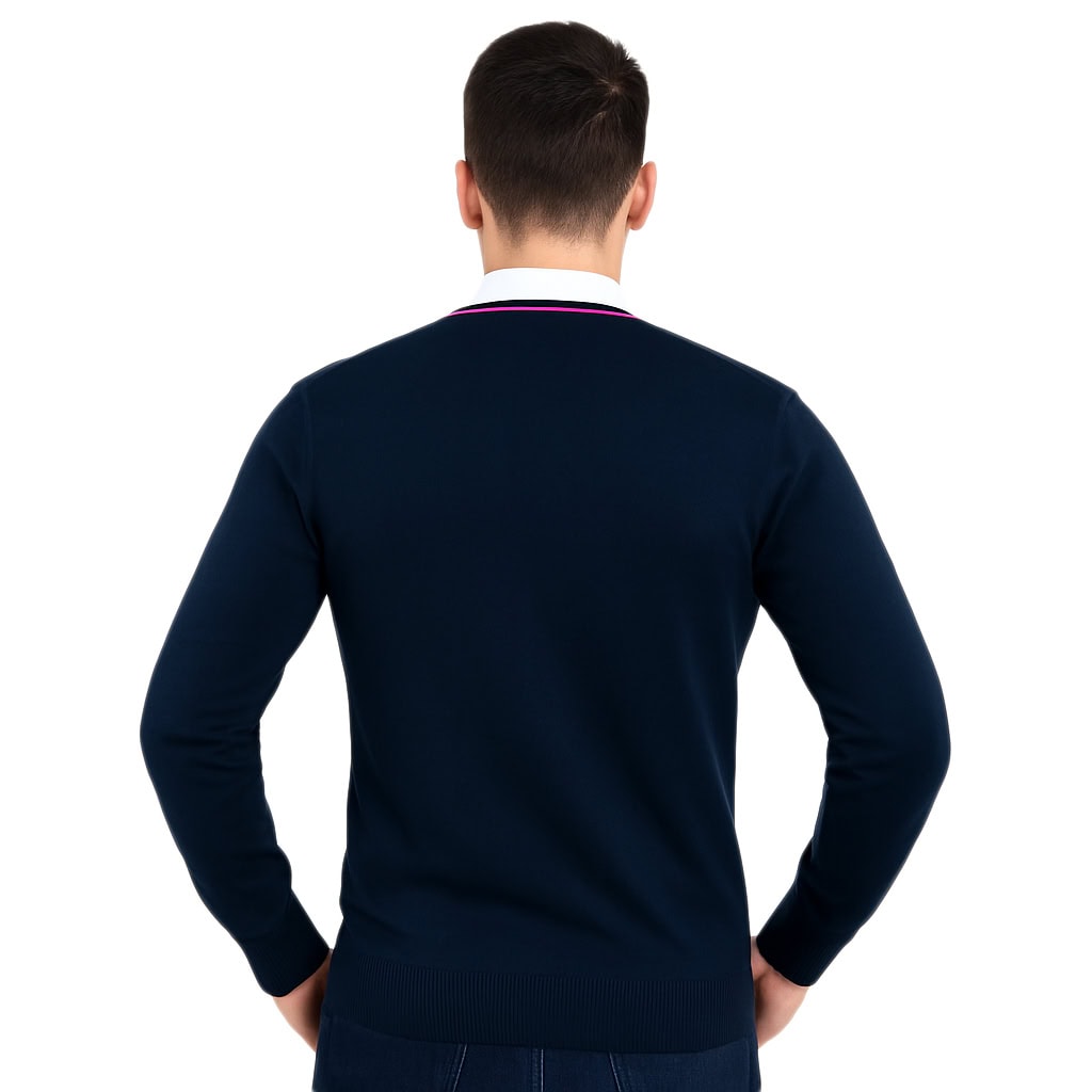 Sweter Męski Granatowy Vneck Długi Rękaw Stylowy Różowy Bawełna Akryl
