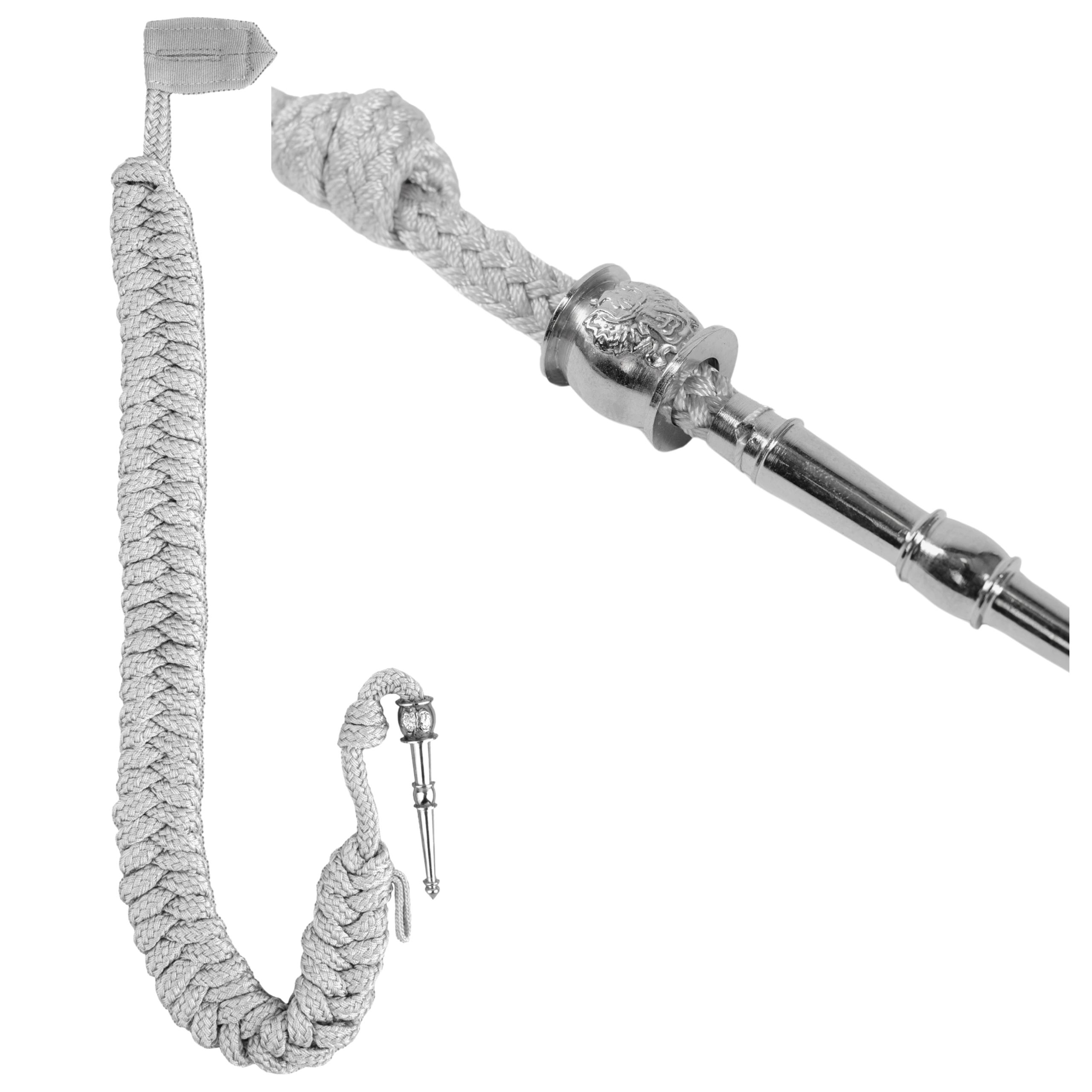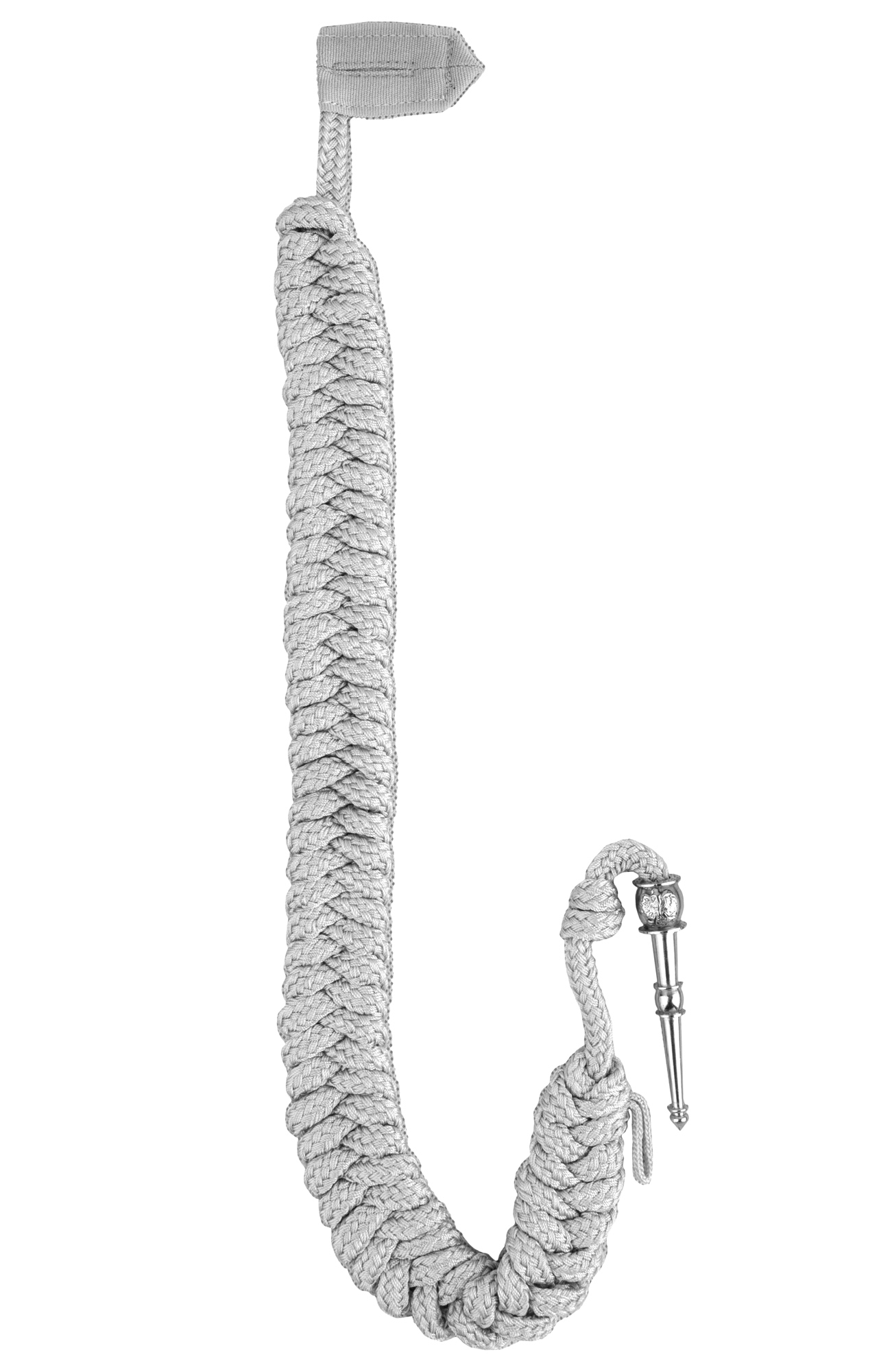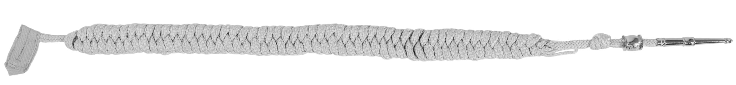 Srebrny sznur galowy do munduru galowego Policji i Wojska Polskiego. Pleciony w ozdobny warkocz, zakończony metalową buławą, wykonany według oficjalnych norm KGP i MON.