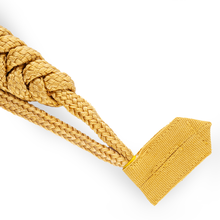 Sznur galowy PSP dla Aspirantów to elegancki element umundurowania strażaka, wykonany według obowiązujących przepisów. Pleciony warkocz w kolorze złotym z dodatkową pojedynczą linką i stylizowaną prądownicą podkreśla rangę i prestiż funkcjonariusza. Dedykowany dla stopni: Młodszy Aspirant, Aspirant, Starszy Aspirant, Aspirant Sztabowy.