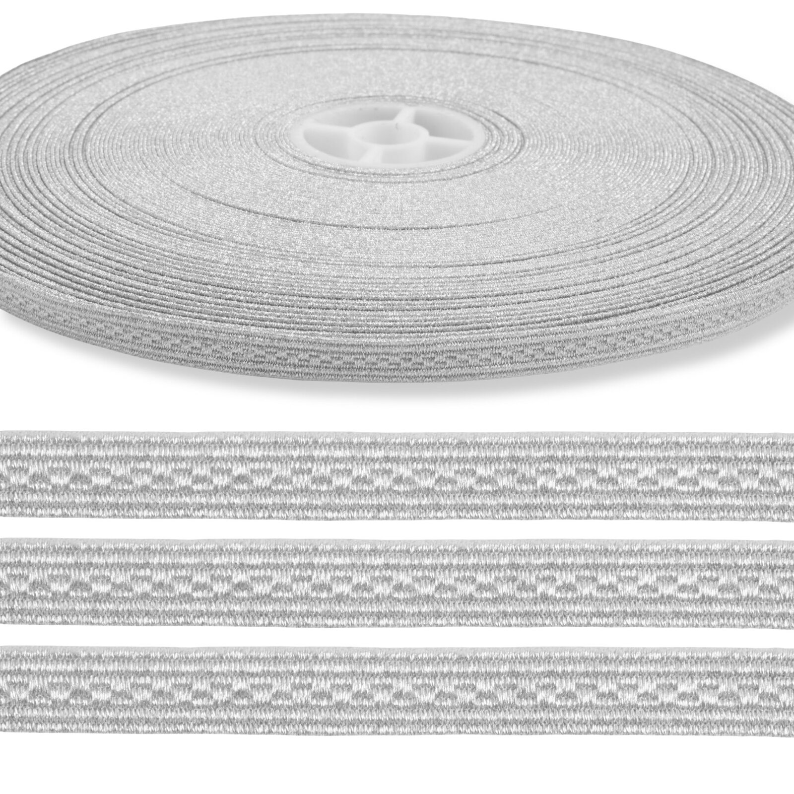 Ozdobna taśma srebrna 7 mm do wykańczania odzieży, dodatków i dekoracji. Elastyczna, trwała i elegancka – idealna do krawiectwa i projektów DIY.