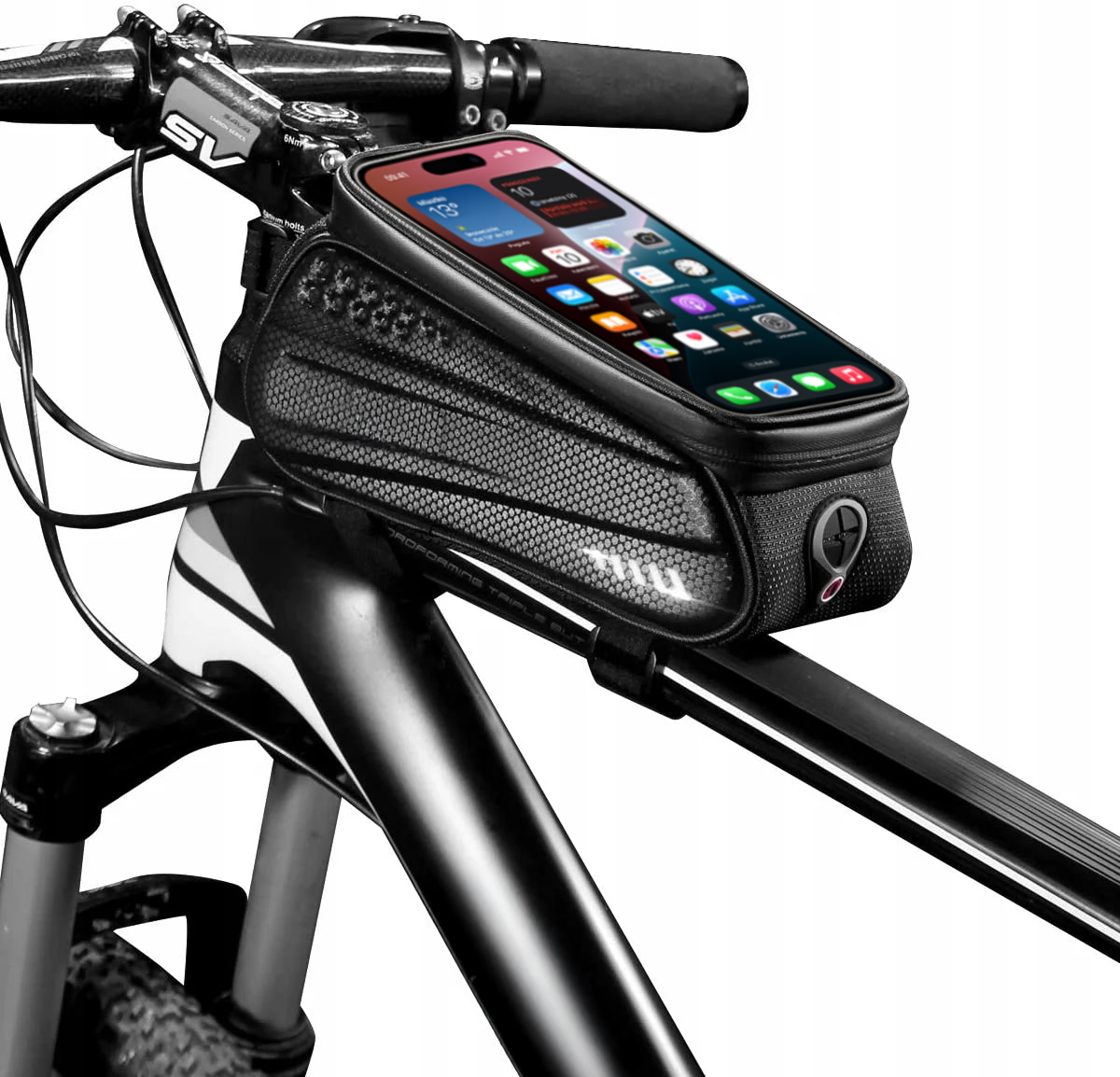 Wodoodporna sakwa rowerowa 1L – praktyczne etui na telefon i drobiazgi, które mocujesz bezpiecznie na ramie roweru. Dzięki przezroczystemu panelowi możesz korzystać z nawigacji, a solidna konstrukcja chroni zawartość przed deszczem i uszkodzeniami. Idealna na każdą trasę!